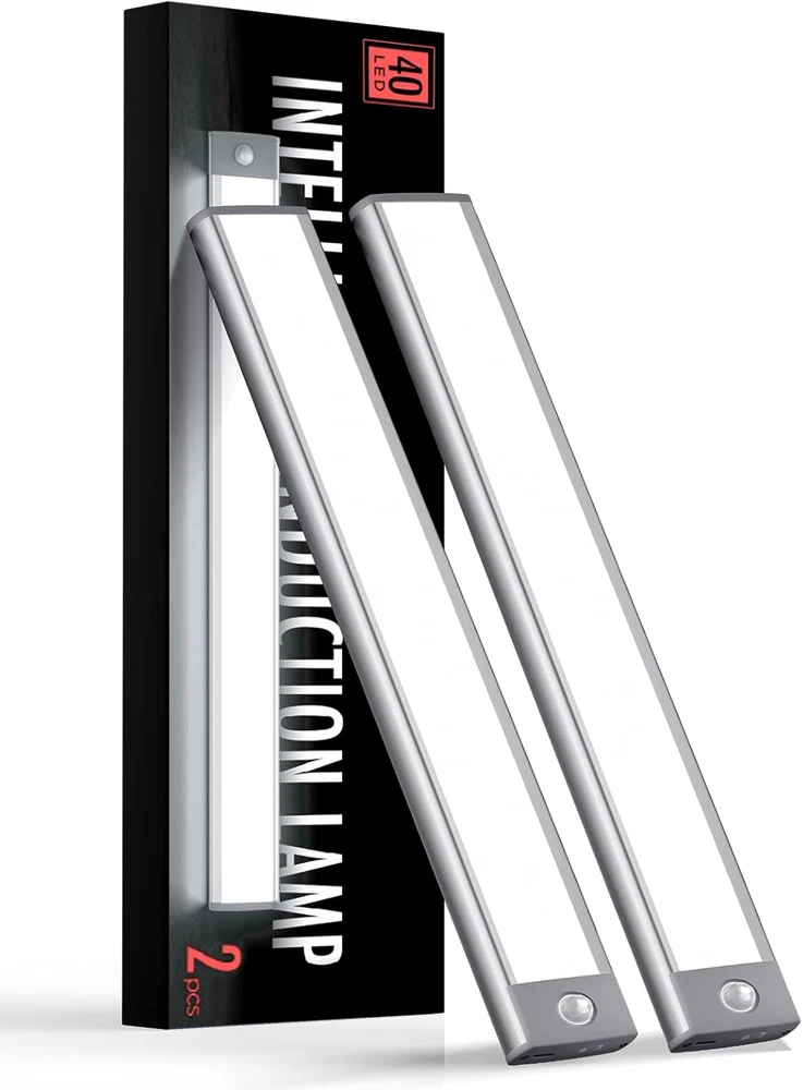 Infrared Induction, motion sensor light indoor :The PlR sensors on the motion sensor lights detect human motion by sensing the temperature changes within the detection area(Range: 13ft, Angle.120°). Once detecting your approaching, the light is activated and will shut off after 20s you leave,Intelligent Life, Starting from Lights. 10in Soft and bright cabinet lights :The newly upgraded technology and hidden light beads enable this under cabinet lighting to have higher brightness while also providing softer lighting that is free of dazzling, video flash, or harm to the eyes. Higher lumen up to 180+20%(40LED)achieves a optimum illuminated area.switch Modes:(ON/OFF) Mode, All-Day motion sensor (Auto) Mode, Dark sensing (Night) Mode. USB-C battery operated lights:Charge the under cabinet lights by plugging the included USB-C charging cable into a PC, socket, or power bank, The inbuilt 2000mAh lithium battery about 3 hours to get a full charge and powers the LED light for 30 to 45 day (if the light is activated five times a day).Or continuously illuminate for 8-9 hours No wiring required, no need to replace batteries, more energy-efficient and environmentally friendly. Charge occasionally but benefit daily. Magnetic Absorption, Effortless Installation:No drilling or screwing is needed for installation. With the help of the strong magnet inside the closet light, you can choose between two installation methods - directly absorbing onto metal surfaces or utilizing the adhesive tapes and metal pieces. When necessary, take the lights down for illumination at any time. Multi-Scene Applicable under cabinet lighting wireless:The wireless under counter lights for kitchen is designed for multiple uses. This safe and convenient motion sensor light indoor is a great illumination solution for the baby room, stairs, basement, storeroom, cabinet, wardrobe, garage, and trunk.Serve as an emergency light, just in case. Product Description PIR Motion Sensor The motion sensor lights detect changes in temperature (body heat) to decide whether there are living beings. The lights light up the way ahead once you step into the detection area and turn off to save energy 20 seconds later after you walk away. Adhesive Magnetic Strips Magnetically stick the lights on smooth metal surfaces directly or utilize the adhesive and metal strips for hassle-free installation. Peel off the protection films of the adhesive and stick the metal strips onto the wall to absorb the closet lights.
