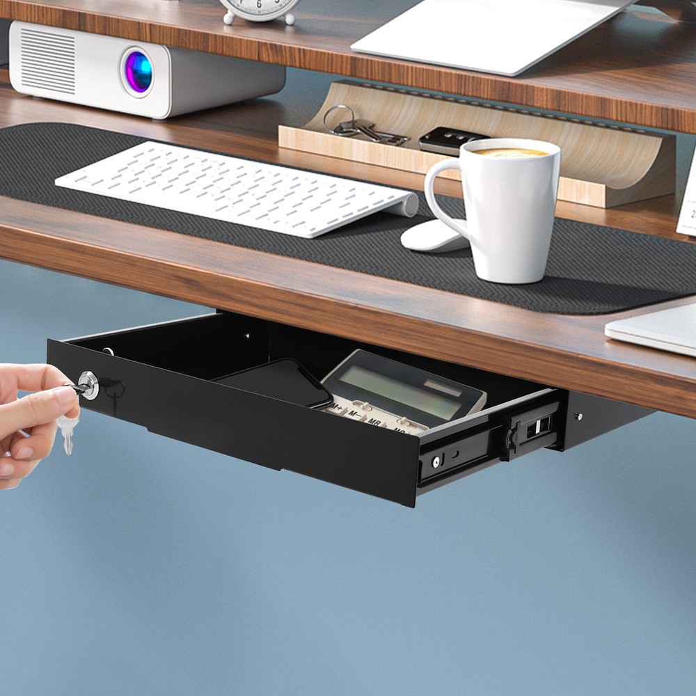 Description Declutter your workstation and enjoy a clean space with this sliding pull-out drawer. You can access your materials without disturbing office neighbors thanks to the quiet, smooth sliding mechanism, and the sleek design blends well with a majority of environments whether at home or in the office. Buy it quickly and enjoy a more convenient life. Key Features Sturdy and Durable: It is made of high-quality iron with welding and plastic spraying processes, which is non-toxic, odorless, anti-corrosion, and rust-resistant, ensuring its beauty and long-term use. Excellent Organizer: You can put your mouse, charger, sticky notes, etc. in it, and can be used at hand, bringing convenience at the same time can also make your desktop more neat! Maximize Your Desk Space: You can hide it under the table, and it does not take up space in your space and can store a variety of items so that your desktop is not messy. Thoughtful Design: You can retrieve your items quickly and quietly with its smooth sliding mechanism without disturbing your family. In addition, the locking and enclosed design ensures that the items you place are secure and protected from dust. Simple Installation: The one-piece drawer structure with pre-drilled holes and complete accessories lets you install it easily! Easy to Clean: Thanks to its simple construction and smooth surface, you can wipe the stains off its surface with a damp rag. Ideal Gift: Thanks to its practicality and beauty, you can give it to your friends as a holiday or housewarming gift! Protective Package: We use pearl cotton to package this product to minimize damage to the product during transportation. Details Rounded Edges: The smooth and rounded edges are comfortable to touch and improve the safety of use without scratching your skin. Fixing Screws: They make this product structure more stable to store your writing utensils and office supplies with assurance. Application It is installed under the table to store various items, such as a keyboard, mouse, notebooks, iPad, phone, pen, pencil, glue, eraser, adapter, earphone, cosmetics, or other small items used regularly. It is designed to fit both standing desks and standard fixed-height workstations. Specification Color: Black Style: Modern Material: Iron Shape: Rectangular Process: Welding and Plastic Spraying Mount Type: Under Table Mount Applicable Table Thickness: 20mm/0.787in Product Size: 36*27*5cm/14.17*10.63*1.97in Package Size: 39*32*8cm/15.35*12.6*3.15in Load Capacity: 2kg/4.4 lbs Net Weight: 2.5kg/5.5 lbs Gross Weight: 3.2kg/7.05 lbs Package Included 1* Sliding Pull-out Drawer 1* Lock 2* Keys Other Accessories for Installation Notes Please check that the desktop type is appropriate before purchasing. Please note that this product does not contain any other items shown in the picture. Please ensure that your desk can support the total weight of the drawer and load capacity. Please allow the slight color difference caused by the shooting light and 1-3cm error due to manual measurement and make sure you do not mind before ordering. Payment Delivery details Terms of sales About us Contact us Payment We accept ebay payment 。 Fees such as import duties, taxes are not included in the item price or shipping costs. These charges are the buyer's responsibility. Delivery details Shipping: 2-9 working days to: USA Terms of sales We maintain high standards of excellence and strive for hundred percent customer satisfaction. Feedback is very important to us. We hope that you contact us immediately before you give neutral or negative feedback, so that we can address your concerns. It is impossible to address issues if we do not know about them! About us Your satis faction is our ultimate goal. We work hard to earn your trust and future business. Our certified technicians have tested each item before shipping. The unit comes with 1 year limited warranty on all manufacturing defects. a) If you receive a defective item, you may return it or ask for a discount. Please contact us within 14 days after you receive the package. b) What you returned must be intact and in its original packaging as re? u. Customer is responsible for shipping costs of the returned item. c) We will cover the cost of shipping back t with the shipping rate indicated in the registration page. We will send you a new unit or refund the full payment you paid. Thank you. Contact us Business Hour Business Hour: Monday To Friday: 8:30 AM to 5:00 PM (Beijing China time) Due to time zones, our reply to your questions may not be immediately. But within above working time, we will reply your email within 24 hours. If it's non-workdays, please kindly be patient and wait till Monday. Please contact us with ebay message. Please feel free to contact us if you have any questions. Monday To Friday: 8:30 AM to 5:00 PM (Beijing China time) Due to time zones, our reply to your questions may not be immediately. But within above working time, we will reply your email within 24 hours. If it's non-workdays, please kindly be patient and wait till Monday. Please contact us with ebay message. Please feel free to contact us if you have any questions. On Mar 11, 2026 at 23:41:20 PDT, seller added the following information: