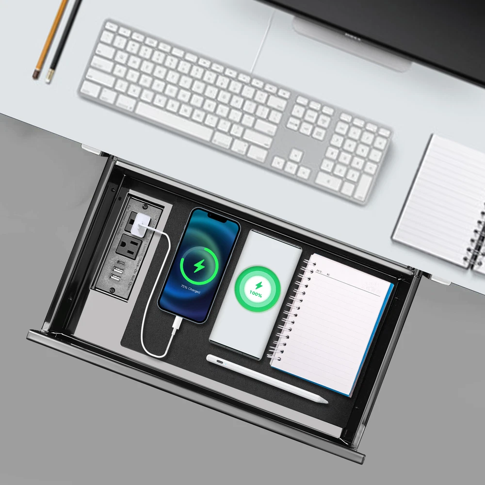 Under Desk Mounted Sliding Pull-out Storage Drawer with Built-in Power Strip ❤Welcome❤ Description This under-desk storage drawer with a power supply is hidden under the desk board, cleverly utilizing space to expand your storage space and improve your office experience. It comes with a power supply inside, allowing you to charge conveniently and making wires less cluttered. The sliding drawer design makes it easy to access or store items, keeping your work desk organized and making your daily work more efficient. Key Features Sturdy and Durable: The high-quality iron and welding and plastic spraying processes give the product high hardness, long service life, and good resistance to corrosion, rust, wear, and deformation. High-load Bearing: The sturdy brackets, strong screws, and thickened plates give the product a strong structure to hold 4.4 lbs items. Excellent Under-desk Storage: The under-desk mounting allows it to make full use of space, providing you with 14.3*8.7*4in of interior space, allowing you to easily store your files, notebooks, and small items. Thoughtful Design: The 1500W power strip comes with two jacks, 2 USB ports, and a type-C port making it easy for you to charge small electronics such as cell phones and tablets while keeping them and their cables organized. Convenient Design: The pull-out design allows you to easily access and store your belongings, allowing the drawer to be hidden under the table without detracting from the appearance of your table. Simple Installation: The pre-drilled holes and needed accessories allow you to quickly and easily finish the assembly and installation. Easy to Clean: The simple structure and smooth surface allow you to easily clean it with a soft cloth. Customer Service: We aim to provide quality products and services. If you have any problems, please feel free to contact us. We will reply and solve the problem for you as soon as possible. Details Soft Mat: It can be laid inside a drawer to provide a soft and cozy layer of protection for your belongings. Long Power Cord: The 6.56ft power cord allows you to install it with less distance limit. Application The product can be used in indoor environments such as homes and offices for paper, writing utensils, office supplies, electronic equipment, and other items. Specifications Color: Black Material: Iron Shape: Rectangular Mounting Type: Under Desk Mount Process: Welding, Plastic Spraying Assembly Required: Yes Plug Standard: US Standard Power Supply: 110V-130V/12A, 1500W USB Output: 5VDC/2.1A Load Bearing Capacity: 2kg/4.4lbs Product Length(Including Brackets): 17.5in Product Width: 22.86cm/9in Drawer Exterior Length: 39.88cm/15.7in Drawer Exterior Height: 10.67cm/4.2in Power Cord: 2m/6.56ft Interior Dimension: 36.32*22*10.16cm/14.3*8.7*4in Usable Drawer Space: 29.46cm/11.6in Packaging Size: 42*25*6cm/16.54*9.84*2.36in Gross Weight: 3.5kg/7.72lbs Net Weight: 3kg/6.61lbs Package Included 1*Under-Desk Storage Drawer 1*Power Supply Strip 1*Soft Mat 1*Chinese Diagram Other Needed Accessories Notes Please check the size carefully before ordering. Please note that the product is intended for use in indoor environments only. Please make sure your desk can hold up to 11 lbs(drawer weight + weight capacity) before purchasing. Please read the safety precautions on the product label before use. Please allow the slight color difference caused by the shooting light and 1-3cm error due to manual measurement, and make sure you do not mind before you order. DESCRIPTION 2: Welcome to our store for shopping!! ❤️❤️ Thank you for your support! If you have any questions,please feel free to contact us! Welcome to bestwishes4y to purchase products, please feel free to contact us for any questions.👍 Payment Delivery details Terms of sales About us Contact us Payment We accept ebay payment 。 Fees such as import duties, taxes are not included in the item price or shipping costs. These charges are the buyer's responsibility. Delivery details Shipping: 2-9 working days to: USA Terms of sales We maintain high standards of excellence and strive for hundred percent customer satisfaction. Feedback is very important to us. We hope that you contact us immediately before you give neutral or negative feedback, so that we can address your concerns. It is impossible to address issues if we do not know about them! About us Your satis faction is our ultimate goal. We work hard to earn your trust and future business. Our certified technicians have tested each item before shipping. The unit comes with 1 year limited warranty on all manufacturing defects. a) If you receive a defective item, you may return it or ask for a discount. Please contact us within 14 days after you receive the package. b) What you returned must be intact and in its original packaging as re? u. Customer is responsible for shipping costs of the returned item. c) We will cover the cost of shipping back t with the shipping rate indicated in the registration page. We will send you a new unit or refund the full payment you paid. Thank you. Contact us Business Hour Business Hour: Monday To Friday: 8:30 AM to 5:00 PM (Beijing China time) Due to time zones, our reply to your questions may not be immediately. But within above working time, we will reply your email within 24 hours. If it's non-workdays, please kindly be patient and wait till Monday. Please contact us with ebay message. Please feel free to contact us if you have any questions. Monday To Friday: 8:30 AM to 5:00 PM (Beijing China time) Due to time zones, our reply to your questions may not be immediately. But within above working time, we will reply your email within 24 hours. If it's non-workdays, please kindly be patient and wait till Monday. Please contact us with ebay message. Please feel free to contact us if you have any questions. Warranty 5 Years Highlights ❤Good Quality Guarantee❤Long Service Life❤ Features✔✔✔ Exactly like described ! 👍 Manufacturer Warranty 