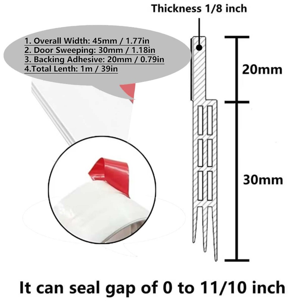 Multi-Functional With six holes, this sealing strip can be easily cut to size, making it suitable for various door sizes and shapes. High-Quality Material Crafted from durable PVC, this sealing strip ensures long-lasting performance and reliability. Easy Installation Self-adhesive design allows for quick and hassle-free installation, saving you time and effort. Versatile Application Ideal for bedroom doors, this strip effectively seals out dust, sound, and wind, promoting a quieter, cleaner. The set includes: 2 x 1-meter (6-hole) windproof rubber strips On Jan 27, 2026 at 18:51:36 PST, seller added the following information: