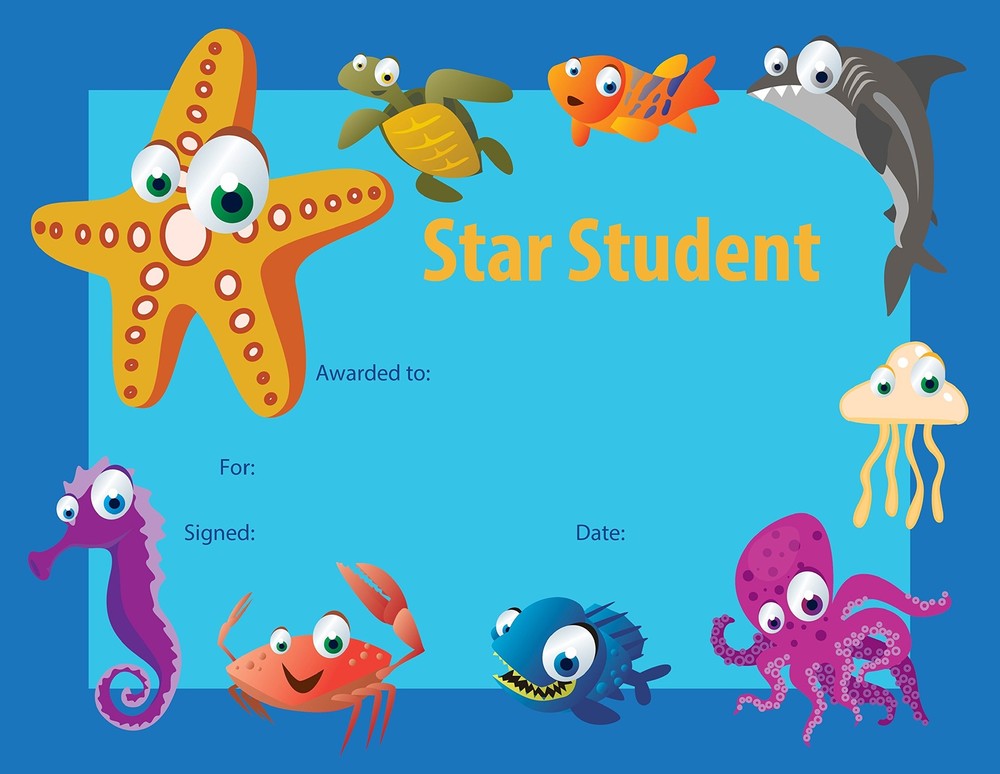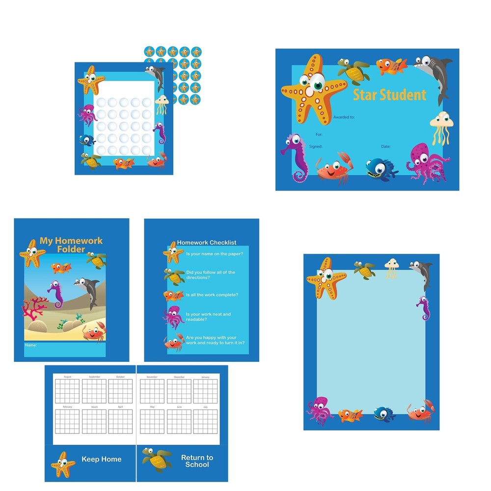 Under the Sea classroom Theme set includes a pack of folders, border paper, sticker chart, and student certificates. Under the Sea classroom Theme set is great for any classroom. The set features a variety of items that are a great way to get students excited about school. Under the Sea homework folders come in a pack of 30 and measure 9.5" x 12. This Under the Sea border paper comes in a pack of 50 and measures 8.5" x 11". The Under the Sea sticker charts come in a pack of 30 and measures 5.25" x 6". The Under the Sea Star student certificates come in a pack of 30 and measure 8.5" x 11". Under the Sea classroom Theme set includes a pack of folders, border paper, sticker chart, and student certificates. The set features a variety of items that are a great way to get students excited about school. Under the Sea classroom Theme set is great for any classroom. Country of origin: United States