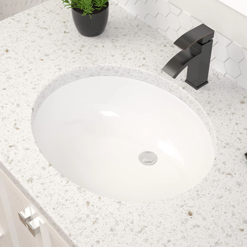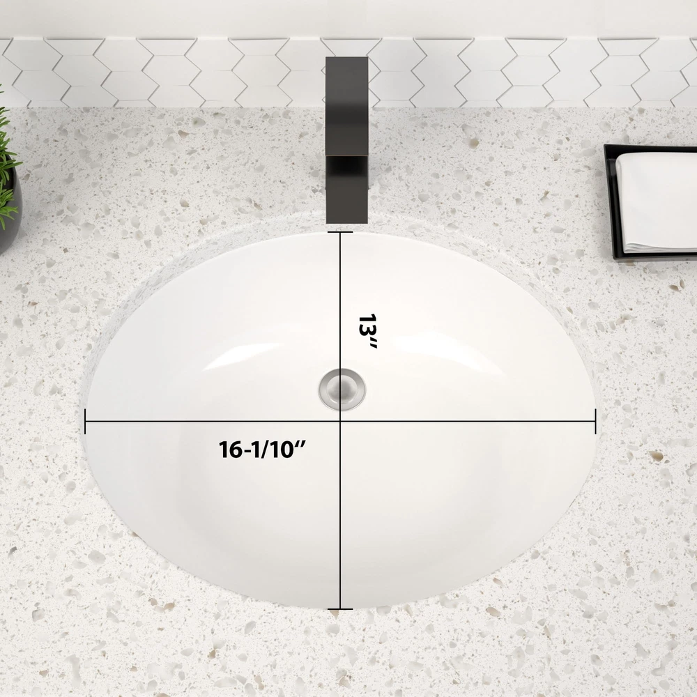 Sleek and contemporary Oval undermount bathroom sink, offering modern, elegant and glamour to update lavatory bathroom. This bathroom sink is crafted with high grade ceramic porcelain, specially designed for impact-resistance. This oval bathroom sink has a smooth, non-porous surface with a baked-on glaze for added durability and a high-gloss finish. Simply wipe the sink surface with a damp cloth to keep it looking beautiful with minimal maintenance. Ceramic bathroom sink Exterior Dimension: 18-1/4" x 15" x 7-7/8" ; Interior dimension: 16-1/10" x 13" . Under counter installation, easy to install, 1-3/4" drain opening as standard to match universal drain set. Faucet and sink drains are not included in the package. Commitment: We always put our customers first and are here to help you at any time. If you have any questions or concerns, we will respond within 12 hours.