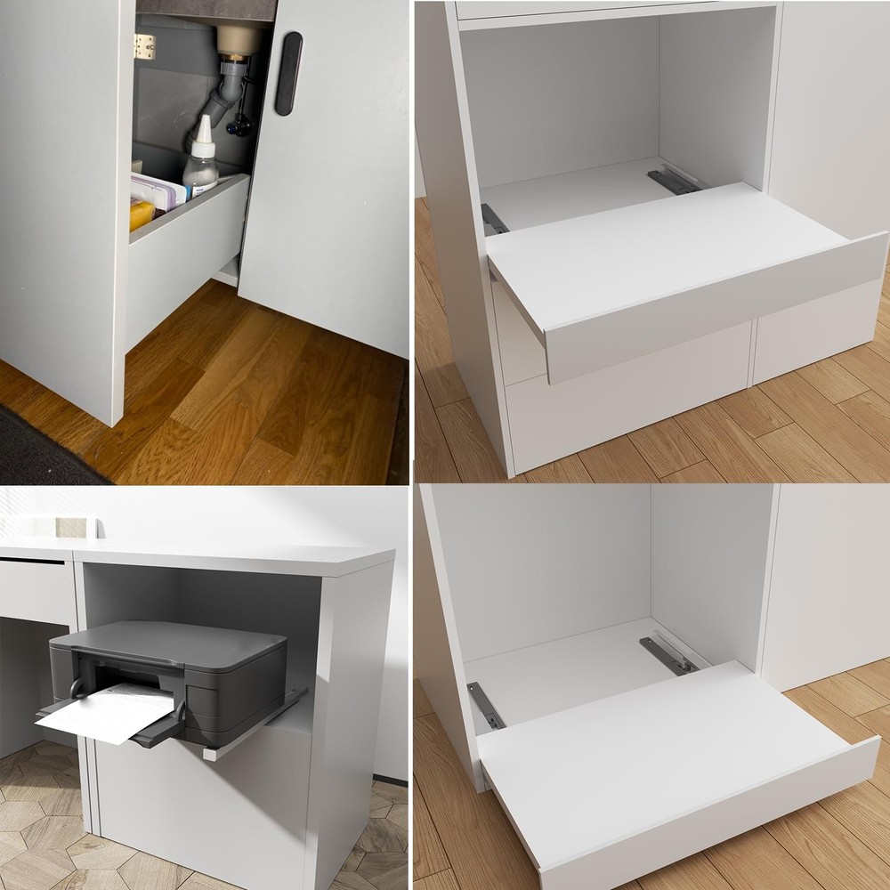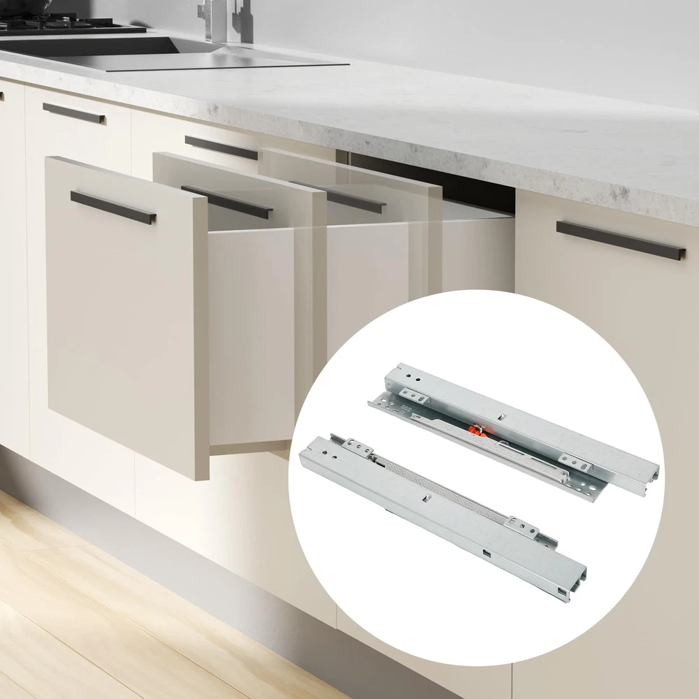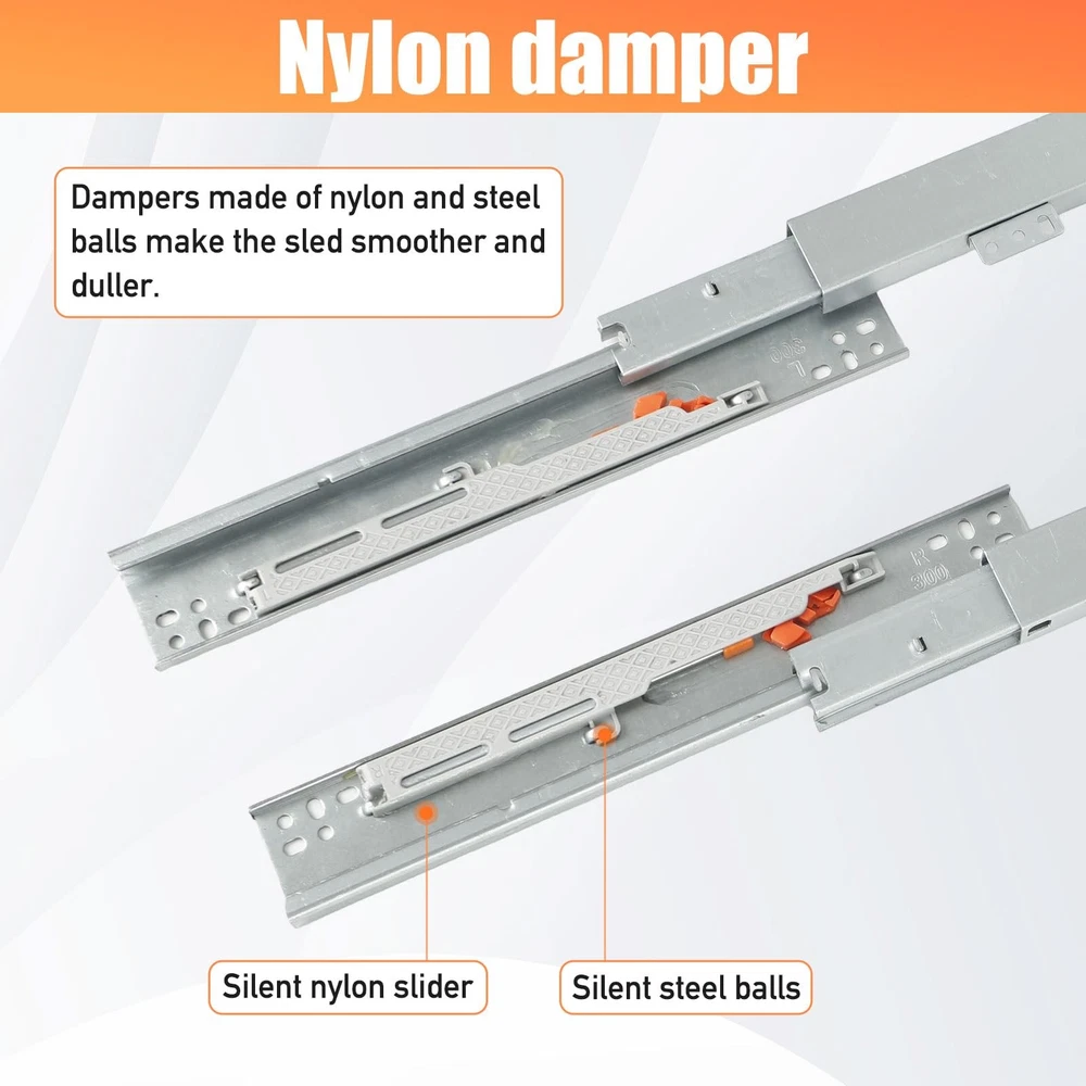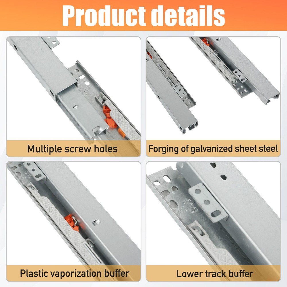 The concealed drawer rails with full extension design provides easy to access to items. Full Extension Drawer Runner: The 3-fold full extension ground mount drawer tracks enables the slides to pull out the full length of the drawer or sliding tray, providing full access to the contents, offering more storage space and room in your slide tray Smooth and Soft Close Slides: The damping on both sides of the cabinet pull out shelves sliders ensure a smooth, silent closing and prevents the drawer from slamming, just simply slide the drawer open and let it close, when you push in, it slow down gently with the shock absorber Sturdy Material: The undermount kitchen sink drawer rails are made of thick cold rolled steel plate with galvanized surface and rust protection, load: 20-30 kg (44-66 lbs), please check the level and alignment and parallel with the inside of the cabinet. Kindly Note: It needs M4*15 self-tapping screw, not included; wear gloves when installation is recommended Concealed Shelf Slides: Drawer slides base mount provide a clean look that highlights your cabinet drawers without looking too large, when it is unfolded, its unfolded length is approximately equal to its length when closed, easy to install a tray to hide in a small buffet Wide Application: Floor mounting shelf drawer runners are used for face frame cabinets or frameless without side wall cabinets. Undermount slides use to pull out shelves in kitchen cabinets, trash can, bathroom drawer, install a moving shelf on the floor of a cabinet, sliding tray, etc.