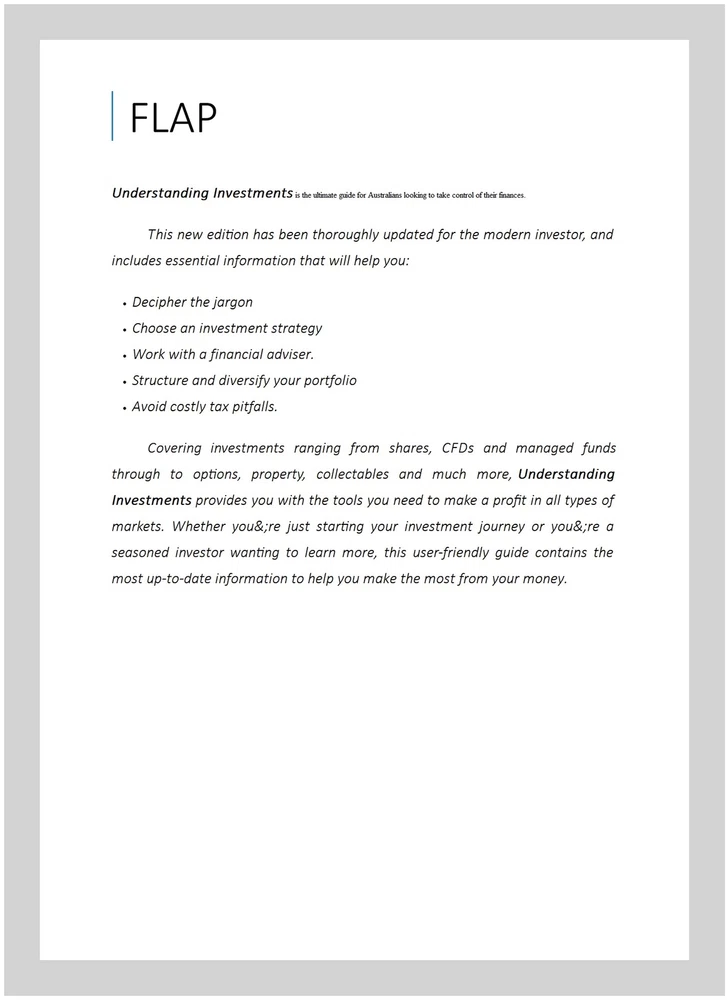 Understanding Investments : An Australian Investor's Guide to Stock Market, Property and Cash-based Investments, Paperback by Beelaerts, Charles; Forde, Kevin (CON), ISBN 1742469507, ISBN-13 9781742469508, Like New Used, Free shipping in the US Understanding Investments is the ultimate guide for Australians looking to take control of their finances. This new edition has been thoroughly updated for the modern investor, and includes essential information that will help you: decipher the jargon choose an investment strategy work with a financial adviser structure and diversify your portfolio avoid costly tax pitfalls. Covering investments ranging from shares, CFDs and managed funds through to options, property, collectables and much more, Understanding Investments provides you with the tools you need to make a profit in all types of markets. Whether you're just starting your investment journey or you're a seasoned investor wanting to learn more, this user-friendly guide contains the most up-to-date information to help you make the most from your money.