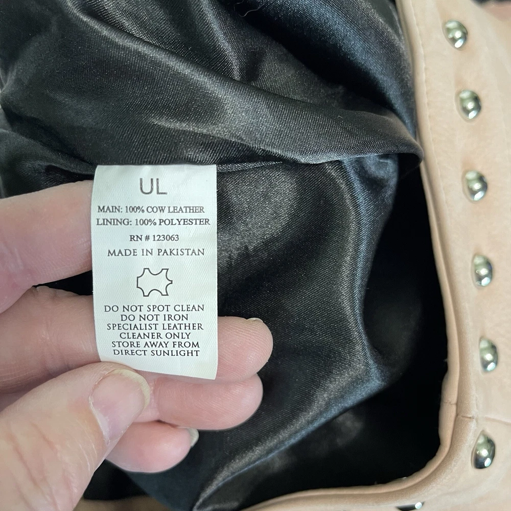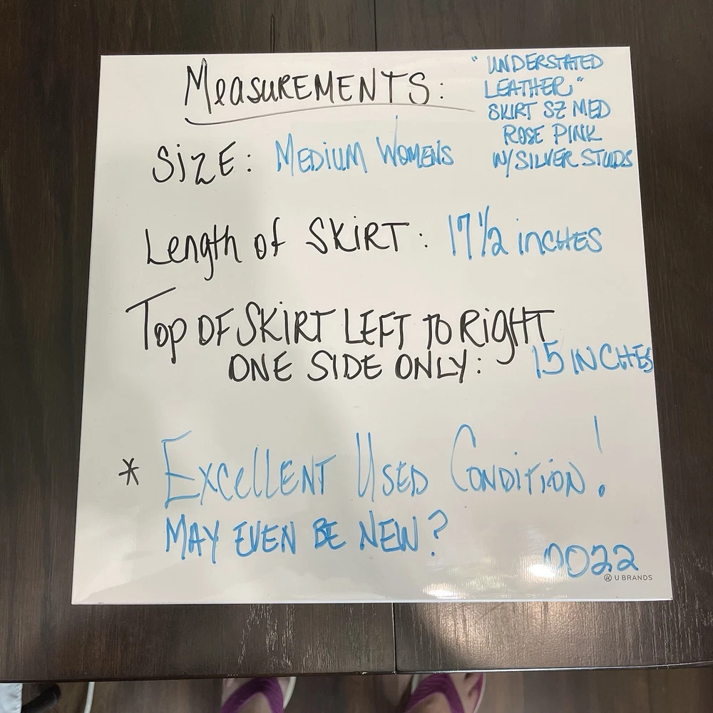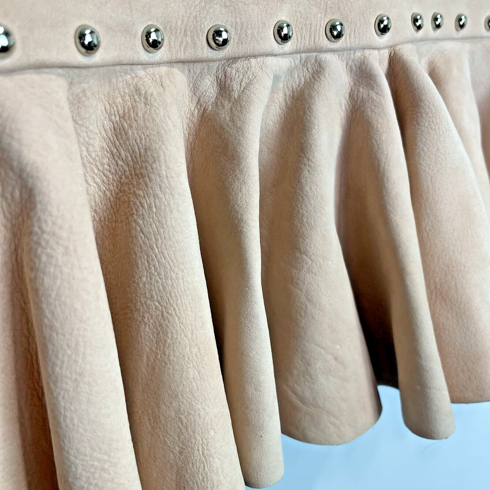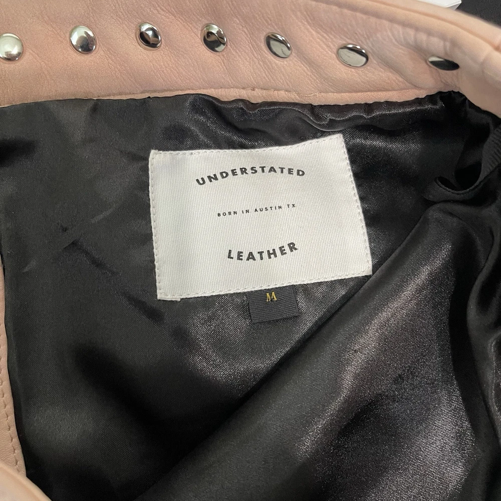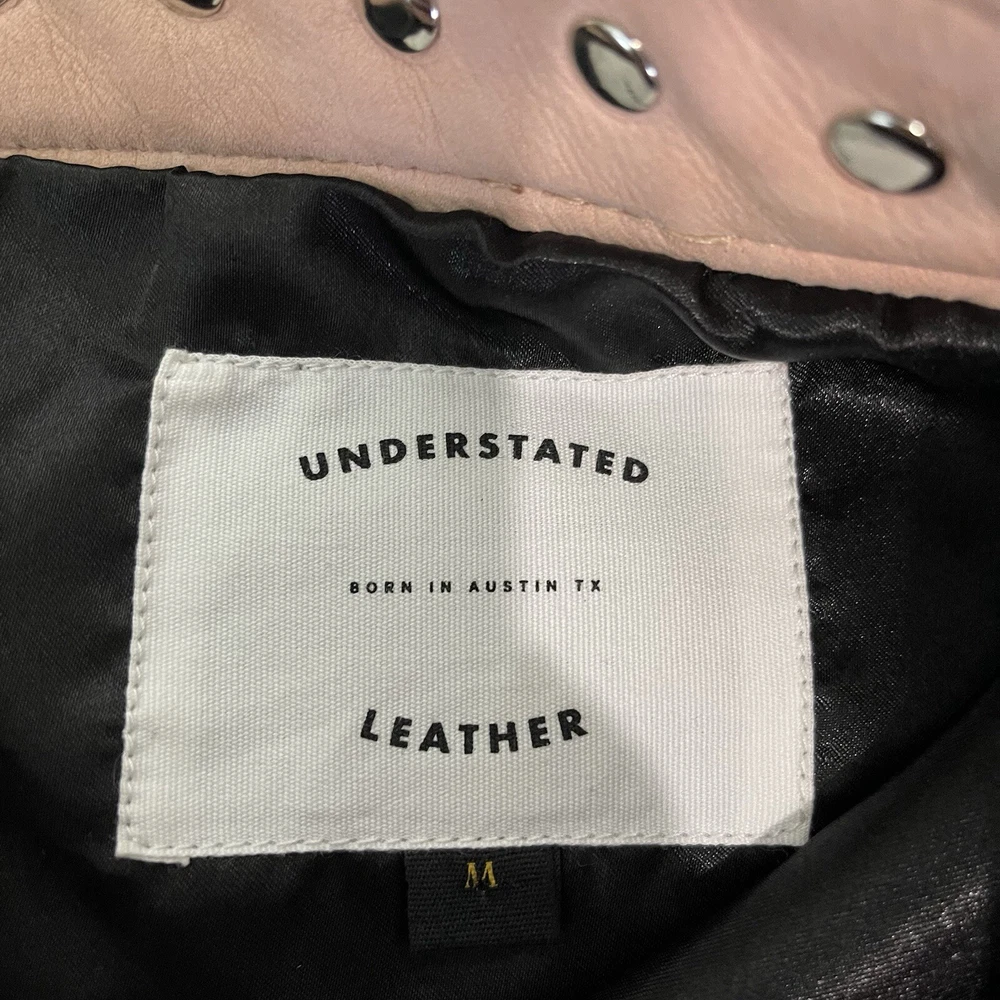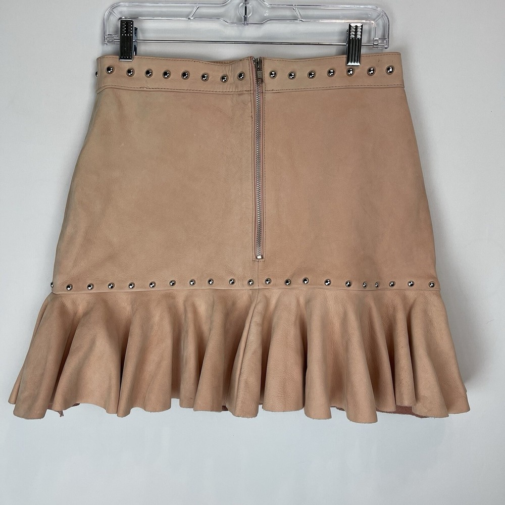 Style: Mini Size Type: Regular Brand: Understated Leather Department: Women Pattern: Solid Color: Pink Accents: Studded Skirt Length: Short Theme: City, Cowboy, Festival, Hipster, Metal, Retro, Rock, Southwestern, Romantic, Boho, Streetwear, Quiet Luxury Character: Cowgirl, Daisy, Silver Type: Skirt Features: All Seasons, Lined Size: M Seller Notes: “Gently used condition.” Material: Leather Fabric Type: Leather