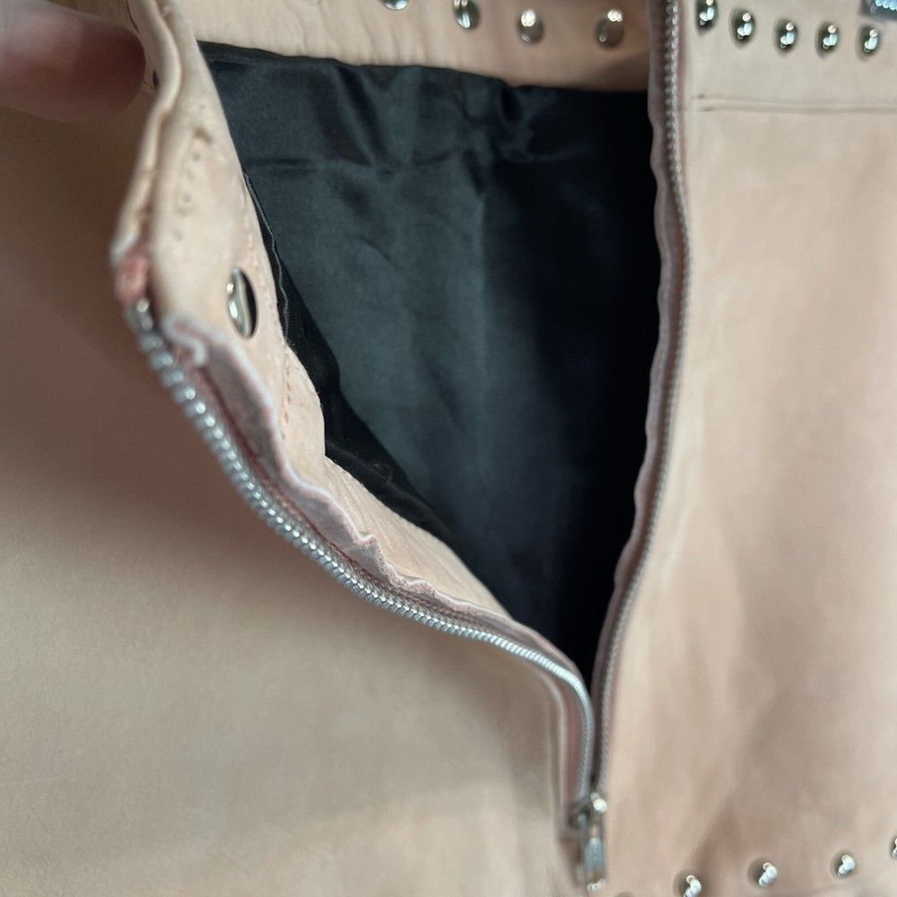 Understated Pink Leather Suede Skirt with Silver Studs Size M