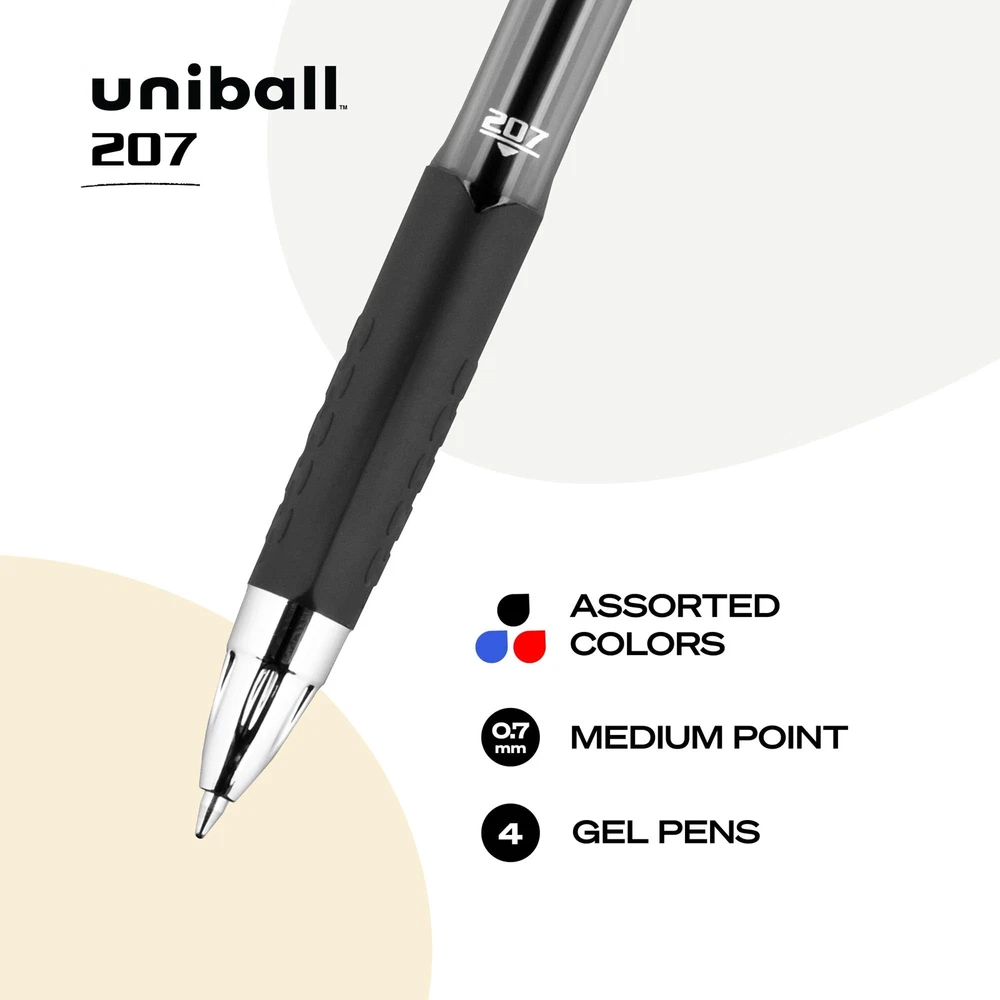 Uniball Signo 207 Gel Pen 4 Pack, 0.7mm Medium Assorted Pens, Gel Ink Pens | Office Supplies Sold by Uniball are Pens, Ballpoint Pen, Colored Pens, Gel Pens, Fine Point, Smooth Writing Pens Make a striking statement with thick, vibrant gel ink in intensely bold colors Premium grip provides superior writing comfort and control Features uni Super Ink which protects against water, fading and fraud Refillable design with a stylish translucent ink window and attractive metal accents Includes: 1 red, 1 blue and 2 black gel pens, 0.7mm medium point Step into a world of timeless elegance and unparalleled craftsmanship with Uniball, a brand that has woven its legacy into the fabric of fine writing instruments. With a heritage rooted in innovation and a commitment to excellence, Uniball has consistently delivered a writing experience that stands the test of time. Immerse yourself in the art of writing with Uniball's meticulously crafted pens, proudly made in Japan. Our legacy of precision and quality is evident in every stroke, ensuring that your thoughts flow seamlessly onto paper with each movement of the pen. From Gel Pens to Rollerball Pens, Ballpoint Pens to Fineliner Pens, and Mechanical Pencils, Uniball offers a comprehensive range that caters to every writing style and preference. Dive into a world of versatility with Uniball's diverse range of tip sizes, spanning from the ultra-micro 0.38 for intricate detailing, to the bold 1.0 for striking emphasis. Whether you're sketching, journaling, note-taking, or bringing ideas to life, Uniball empowers you to effortlessly transition between strokes, giving your writing a unique dimension that captivates the eye and stirs the soul. As you hold a Uniball pen in your hand, you're not just embracing a writing instrument – you're embracing a legacy of craftsmanship, innovation, and the pursuit of perfection. Each pen is a testament to our dedication to providing you with an unmatched writing experience, where every word is an ode to the art of communication. Start your story with Uniball, where heritage meets modernity, and each stroke is an invitation to immerse yourself in a world of boundless expression. Join a community of discerning individuals who appreciate the value of quality, heritage, and the power of the written word. Experience the magic of Uniball for yourself and discover the joy of writing that transcends time and leaves an indelible mark on every page. Shipping We offer FREE shipping on all orders! We use a selection of shipping services such as UPS, FedEx, USPS etc. We only ship to the lower 48 states, no APO/FPO addresses or PO Boxes allowed. Local pickups and combined shipping options are not provided at this time. Return You can return a product for up to 30 days from the date you purchased it. Any product you return must be in the same condition you received it and in the original packaging. Please keep the receipt. Payment We accept payment by any of the following methods: PayPal Please pay as soon as possible after winning an auction, as that will allow us to post your item to you sooner! Feedback Customer satisfaction is very important to us. If you have any problem with your order, please contact us and we will do our best to make you satisfied. Contact Us If you have any queries, please contact us via ebay. We usually respond within 24 hours on weekdays. Please visit our eBay store to check out other items for sale! Thank you for shopping at our store.