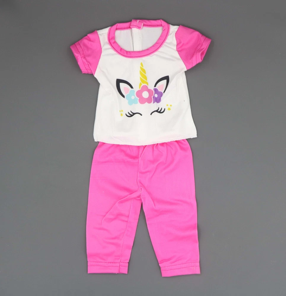 Shipping discount: Free shipping for orders over US $25.00,visit our store to add others items. Item Descriptions: Unicorn pajamas set (T-shirt & pants) New sealed in plastic bag. Size: scaled for 18'' doll After sales: Any questions(such as broken、lost……) before you leave feedback please feel feel to contact us,we will do our best to solve it.