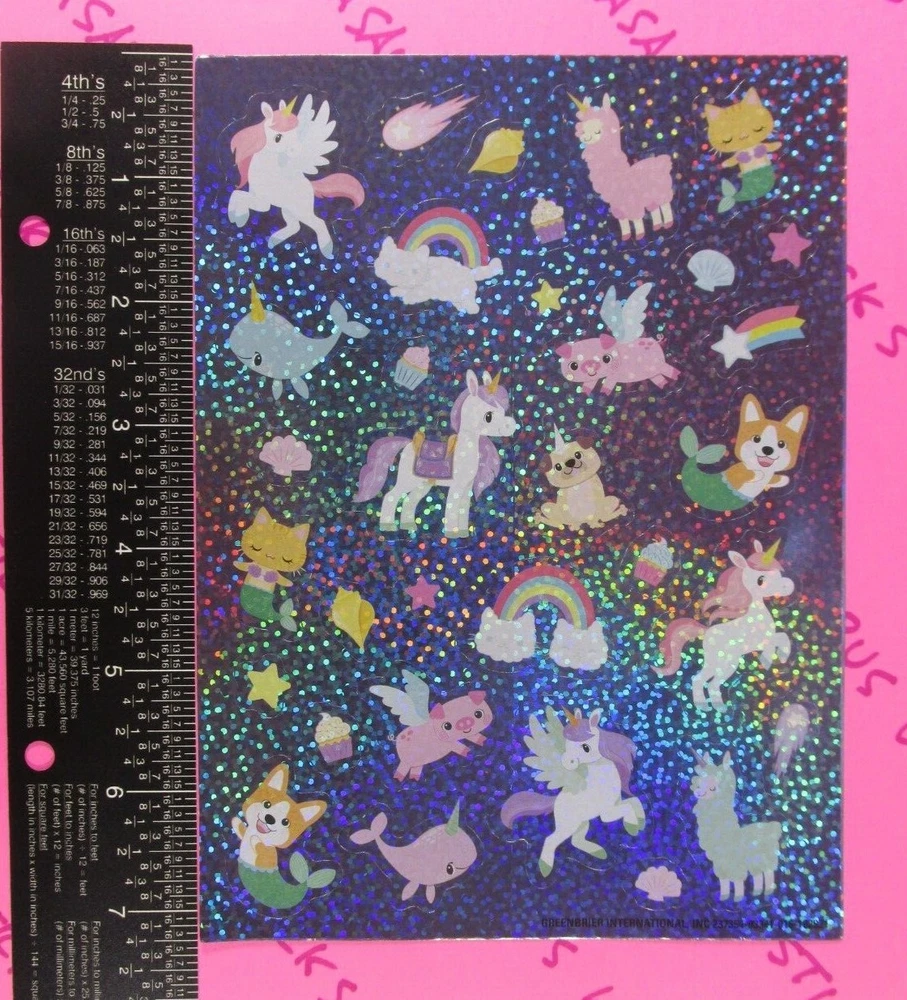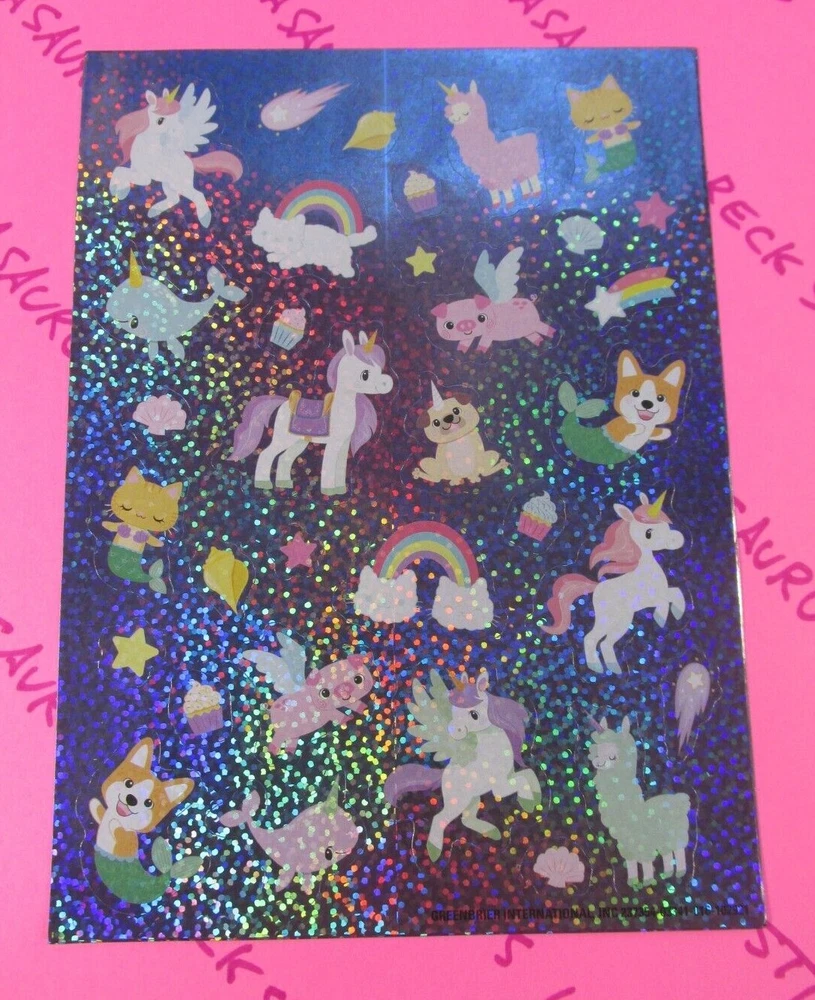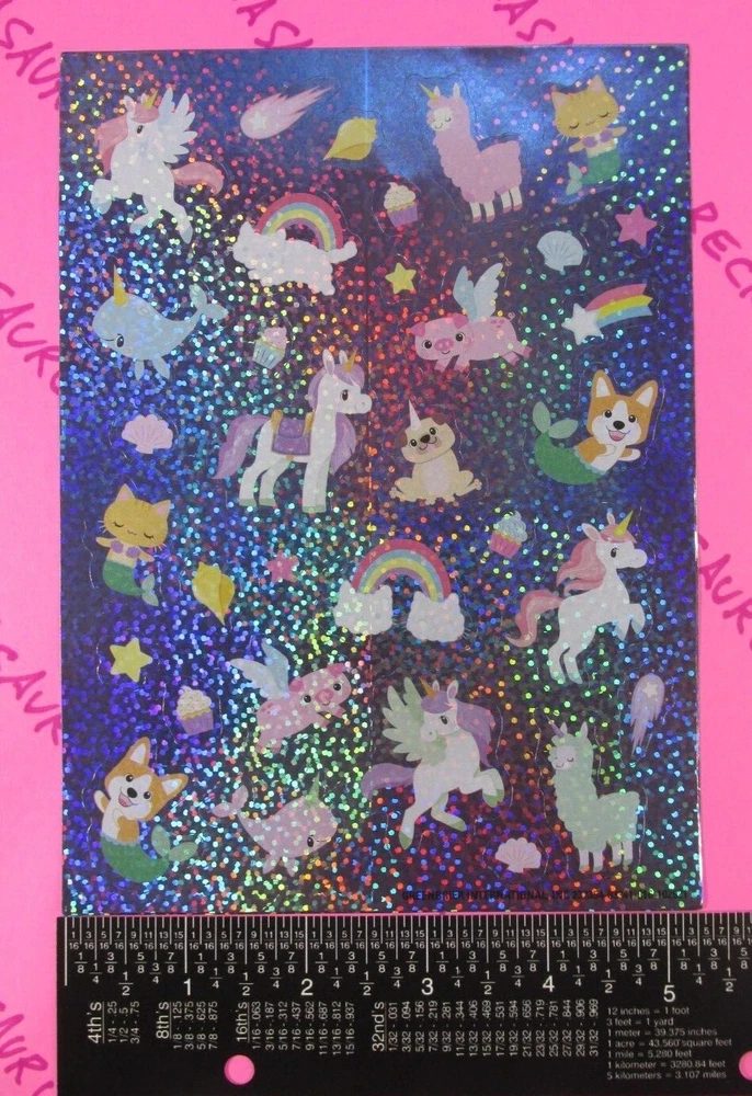 Sticker Sheet Is New. Sticker Theme Is Unicorns Rainbows Lamas Dog Cat Mermaid Flying Pig. Sticker Sheet Is Prismatic. When Purchasing Multiple Sticker Sheets Or Packs Please Add All Items To Cart Before Purchase So That Your Purchase Combines Down To Base Shipping Price. All items are shipped WITHOUT tracking in an envelope with cardstock.
