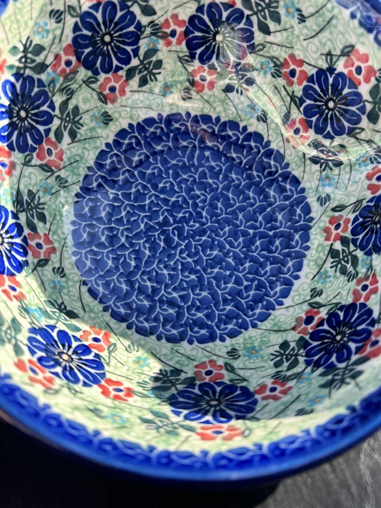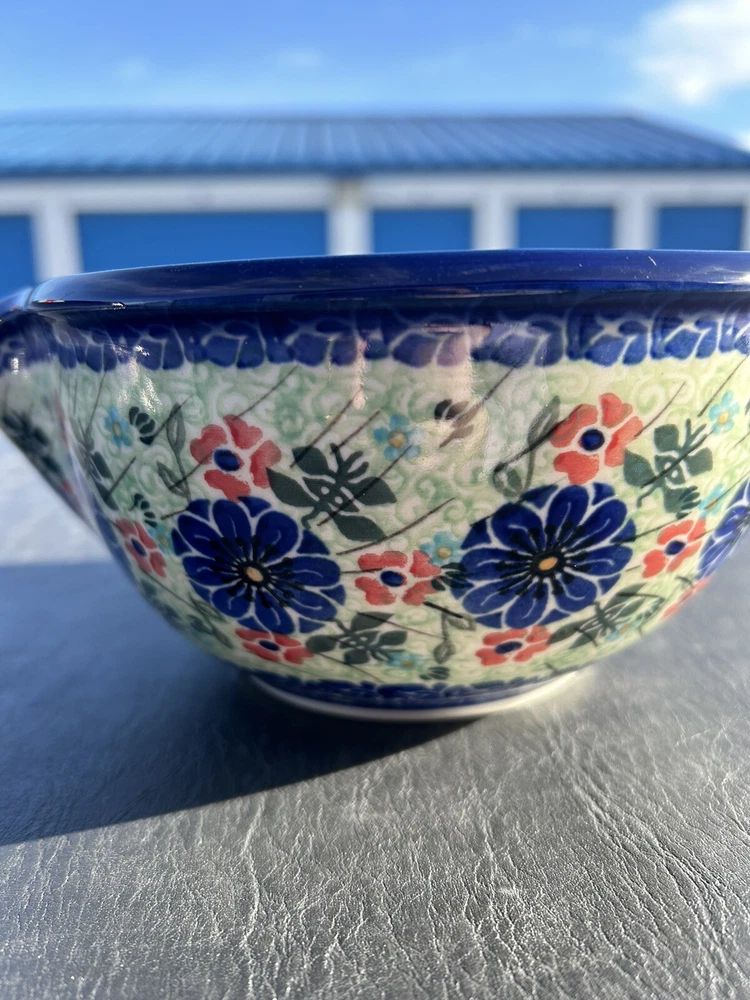polish pottery unikat boleslawiec Handmade Blue Floral Bowl New
