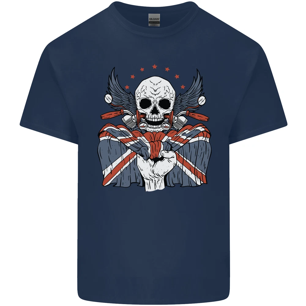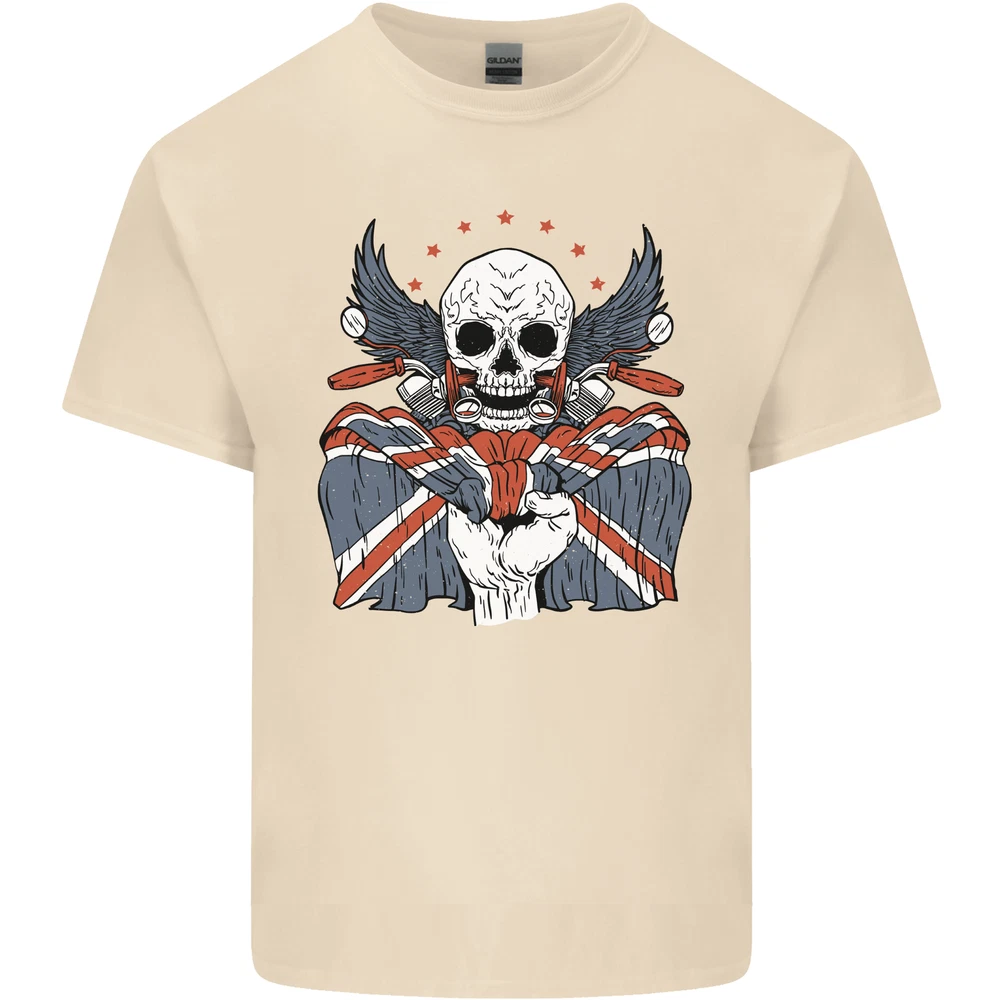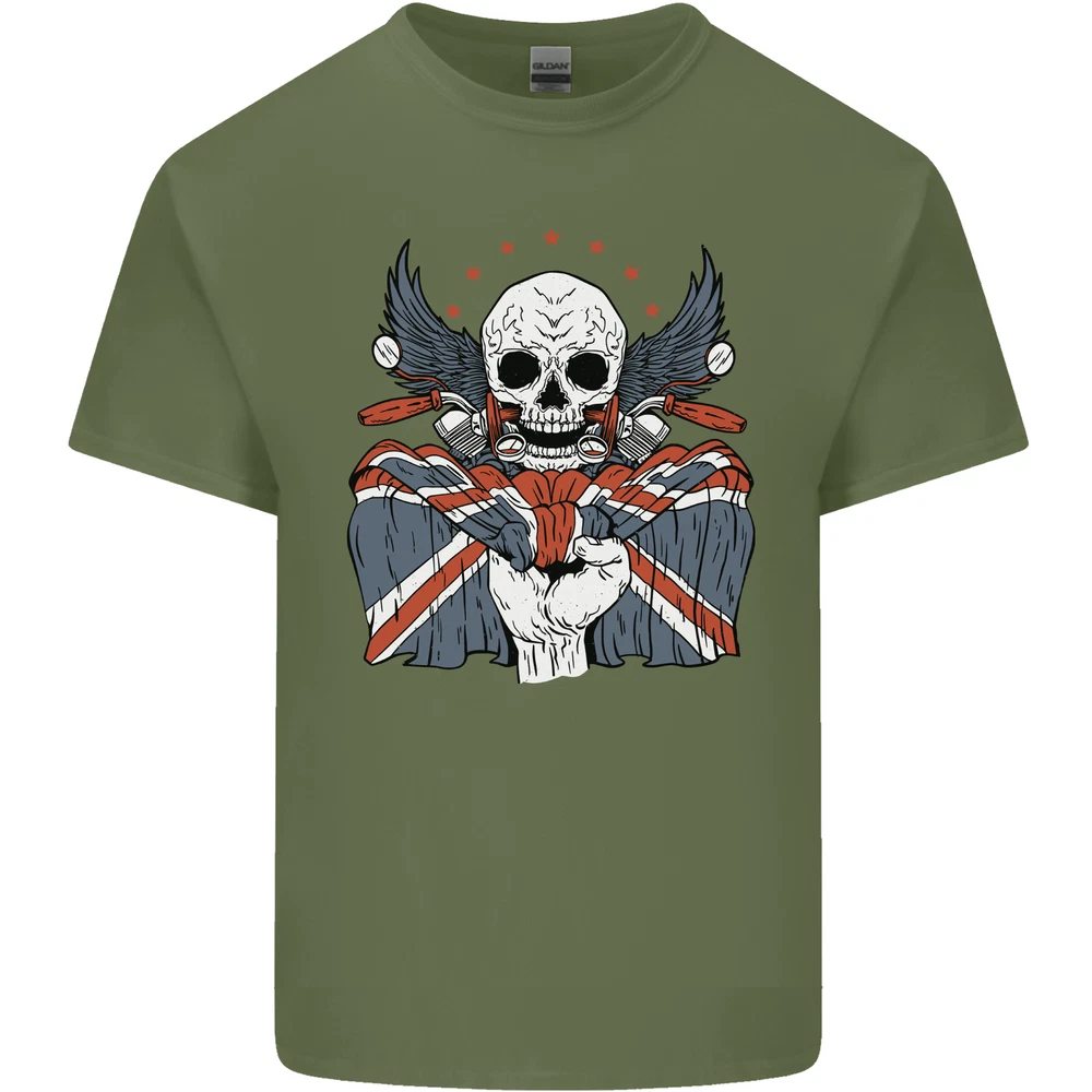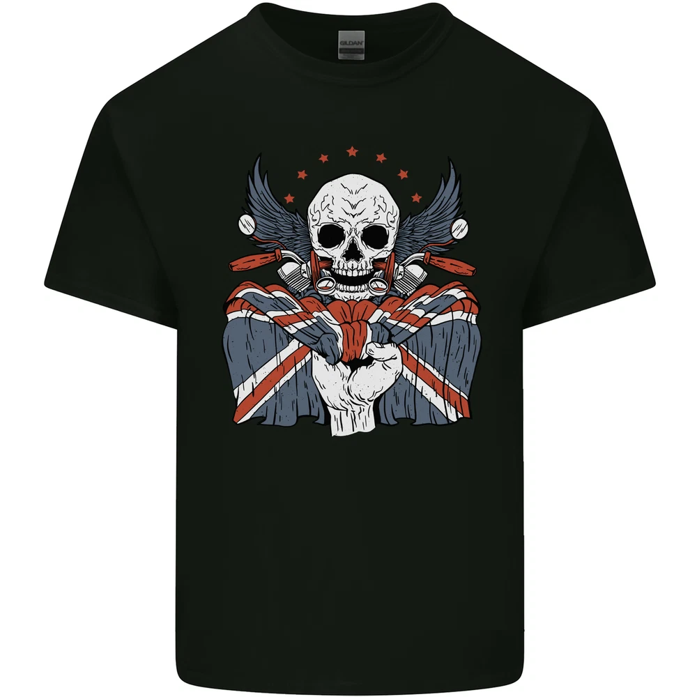 Union Jack Biker Motorbike Motorcycle Skull Mens Cotton T-Shirt Tee Top