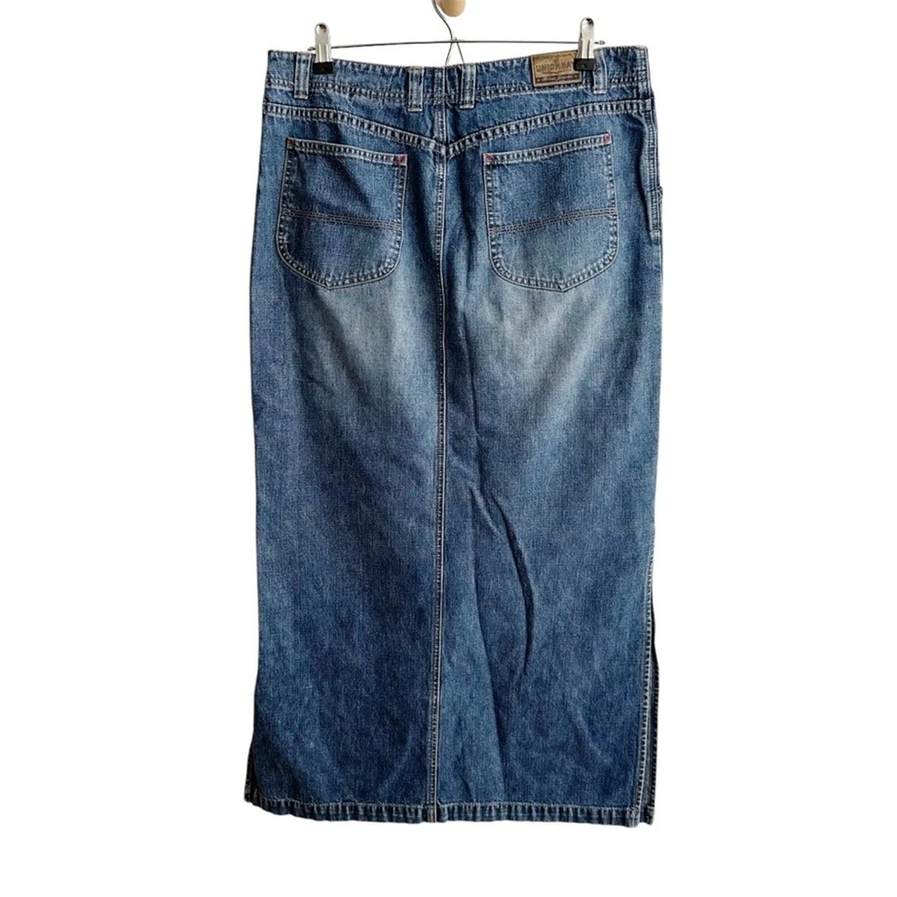 Unionbay Vintage y2k Maxi Denim Skirt with Side Slits Low Rise Cotton Factory Fading Side slits 100% Cotton Size: 11 Excellent pre owned condition, no flaws, see photos