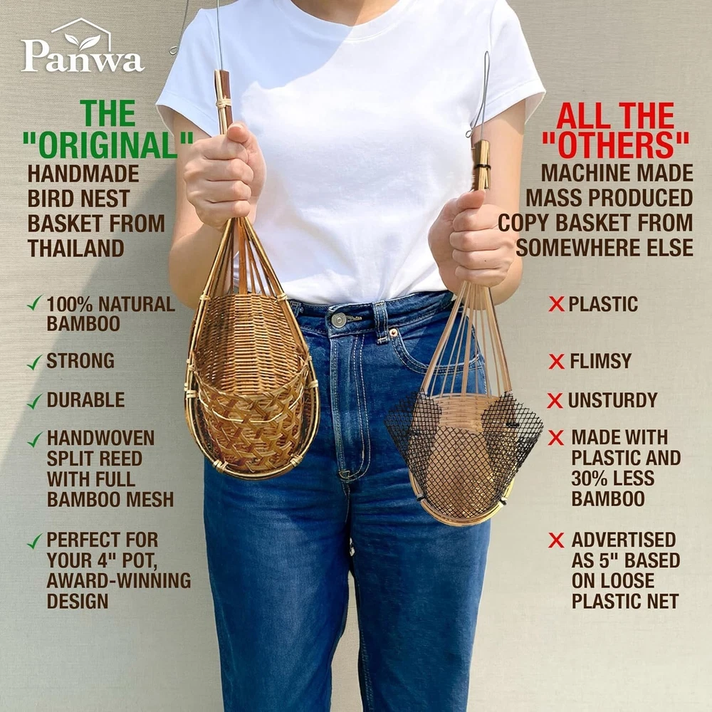 Unique 2-Pack 6 Inch Thai Bamboo Orchid Hanging Planters - Handcrafted for Style ‹ › ‹ › ‹ › ‹ › ‹ › ‹ › ‹ › ‹ › Unique 2-Pack 6 Inch Thai Bamboo Orchid Hanging Planters -Handcrafted for Style 🌱 Totally Unique Each of these stunning baskets is a one-of-a-kind piece, handcrafted in Northeastern Thailand. The deep, dark coffee color showcases the natural beauty of bamboo, ensuring that each planter reflects a unique character and charm that mass-produced items simply cannot replicate. 🌱 Skillfully Crafted Building upon the success of our beloved 4-inch version, the "SUPER SANCTUARY" baskets by are meticulously created by renowned Thai artisans. They are hand-woven with bamboo split reeds and reinforced with carefully hand-sewn bindings, ensuring both beauty and strength. 🌱 Hand Woven Durability Individual weaving techniques ensure that these all-natural plant hangers are not only beautiful but also durable. Designed to drain effectively, the genuine bamboo material withstands the test of time, allowing you to enjoy your greenery without worry. 🌱 Perfect Size With a 6-inch radius and a length of 19 inches, each handcrafted basket is designed for larger plants, vibrant orchid medleys, twisting vines, and delicate cuttings—whether you choose to use them with or without a 5-inch plant pot. 🌱 Easy Care The upkeep of these exquisite planters is a breeze. Simply rinse with water and allow to air dry. Embrace the slight color variations and unique bamboo fleck blemishes that highlight each piece’s authenticity and handmade nature. Why Choose Our Thai Bamboo Orchid Hanging Planters? Transform your indoor or outdoor space with these captivating planters that channel the serene essence of nature. Each basket not only elevates your plants but also serves as a statement piece that reflects craftsmanship, dedication, and artistry. Don’t settle for ordinary—choose unique, choose authenticity, choose our 2-Pack Thai Bamboo Orchid Hanging Planters today! Shipping Free & Fast Shipping - We offer free shipping to most of the USA with a normal delivery time of 3-7 days. However, due to the current situation, additional delivery time (up to 3 weeks) may be required for some items. Alternative Carriers - We may use alternative carriers (e.g. USPS, FedEx, UPS, etc.) to ensure your package arrives safely and on time. Due to the use of multiple carriers, we are unable to provide a tracking number automatically. Handling Time - Orders are processed and shipped within 1-2 business days of receiving cleared payment. Shipping Restrictions - Shipping to Alaska, Hawaii, Puerto Rico, Guam, and other US territories may incur shipping charges or delivery restrictions. Please contact us before ordering, or your order can be refunded/cancelled. State Restrictions - There may be restrictions based on your state of purchase. For example, certain items may not be shipped to California due to state regulations. Contact for Tracking Updates - If you require tracking updates or have any concerns about the delivery of your order, please feel free to contact us, and we will be happy to assist you. Return 30-Day Hassle-Free Returns - We want you to be completely satisfied with your purchase. If you are not, you can return the item within 30 days of receiving it for a full refund or exchange. Easy Return Process - To start a return, simply contact us and we will provide you with a prepaid return shipping label and detailed instructions. Restocking Fee - There are no restocking fees for returns. However, the buyer is responsible for return shipping costs if the return is not due to a seller's error. Refund Processing Time - Refunds will be processed within 5 business days of receiving the returned item in its original condition. Payment We accept all major credit cards, PayPal, and Apple Pay for your convenience. Your payment information is secure and encrypted to ensure a safe and seamless transaction. Please complete your payment within 3 days of purchase to avoid any delays in shipping. Feedback Your feedback is extremely important to us. We strive to provide the best products and customer service possible. If you are satisfied with your purchase, please take a moment to leave us a positive review. If you have any concerns or issues with your order, please contact us before leaving negative feedback. We are committed to resolving any problems and ensuring your satisfaction. Contact Us If you have any questions or concerns, please feel free to reach out to our customer support team. You can contact us through the eBay messaging system. We are available Monday to Friday, 9:00 am to 5:00 pm EST, and we will do our best to respond to your inquiry within 24 hours. Buy it now and enjoy a pleasant shopping experience! UPC: Not Set Unit Quantity: 1 lb Type: Orchids Season of Interest: Fall,Spring,Summer,Winter,All Seasons Sunlight: Full Shade,Full Sun,Low Sun,Medium Sun Safety: Child Safe,Contact Dermatitis,Pet Safe Climate: Arid,Cold,Continental,Highland,Humid Continental,Humid Subtropical,Marine West Coast,Mediterranean,Mountain,Semiarid,Subarctic,Sub-tropical,Temperate,Tropical,Tropical Wet,Tropical Wet & Dry,Tundra Color: Brown,Dark Coffee Features: Air Purifying,Potted,Hanging,Handmade Soil Type: Loam,Peat,Silt Set Includes: Hanging Basket,Trellis Brand: Unbranded Number in Pack: 2 Growth Stage: Mature Watering: Medium Foliage: Not Set Common Name: Hanging Orchid Basket Genus: Not Set Indoor/Outdoor: Indoor & Outdoor MPN: Not Set Growth Habit: Climbing Soil pH: Neutral Growth Rate: Medium Room: Any Room Item Height: Not Set Item Width: Not Set Item Length: 6 in Item Weight: 1 lb Country/Region of Manufacture: Not Set Plant Form: Plant Pot Unit Type: lb Personalize: Not Set