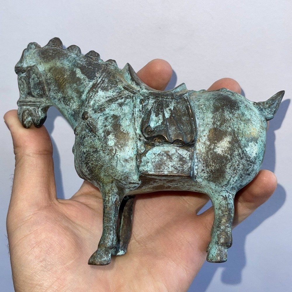 This unique ancient Roman bronze horse statue, dating back to circa 300-400 AD, exudes a sense of history and rarity with its rare patina. As an original antique piece, it showcases the craftsmanship of the ancient Roman era in a striking and timeless style. Made of bronze, this statue captures the essence of the historic period with its intricate details and historical significance, making it a valuable addition to any collection of antiques.