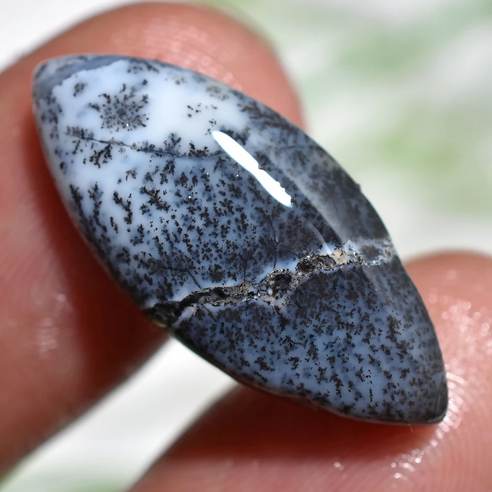 Dendrite cabochon :- SKU : GD-5832 Size : 10x25x3mm, Carat : 9ct 100% Natural Dendritic Gemstone – Authentic gemstone with intricate, dendritic inclusions resembling natural landscapes. Unique Patterns – Each cabochon is one-of-a-kind, featuring nature-inspired designs in subtle tones of white, gray, or black. Polished to Perfection – Smooth, glossy surface highlights its natural elegance. Versatile Use – Ideal for creating pendants, rings, earrings, or artistic jewelry designs. Metaphysical Properties – Believed to enhance grounding, growth, and connection to nature. Let the timeless beauty of this Dendritic cabochon inspire your creativity. Order now to craft truly