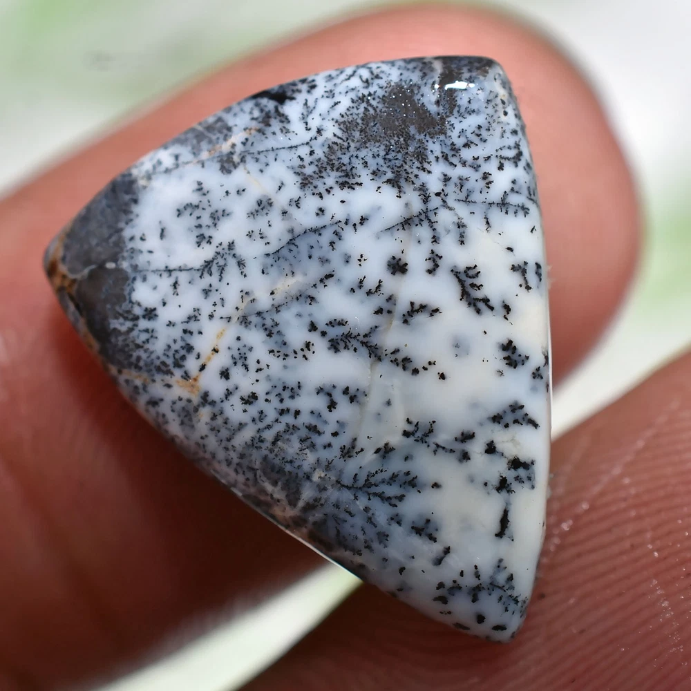 White & Black Dendrite Opal :- SKU :GD-5849 Size : 13x18x2mm , Carat : 7ct Shape : Fancy Color: Stunning black and white contrast with natural dendritic inclusions Finish: Smooth, polished cabochon surface for a refined look Uses: Ideal for pendants, rings, earrings, and custom jewelry projects Availability: Available in retail and wholesale quantities This Dendrite Opal Cabochon is a must-have for designers, offering natural beauty and sophistication to any jewelry collection. Create timeless jewelry designs with this Natural Dendrite Opal Cabochon . Featuring a stunning black and white pattern with intricate dendritic inclusions, this oval-shaped gemstone is perfect for elegant and unique creations.