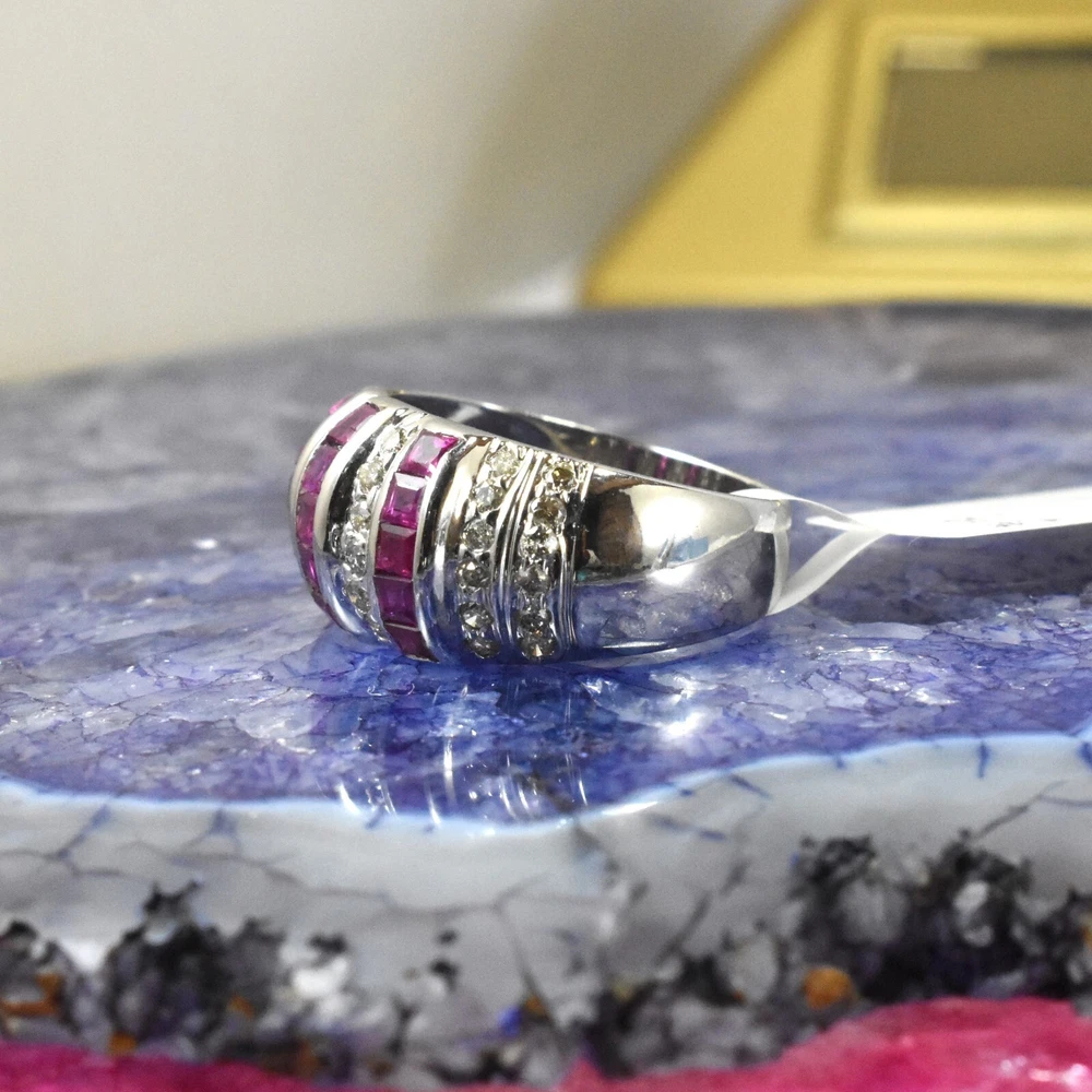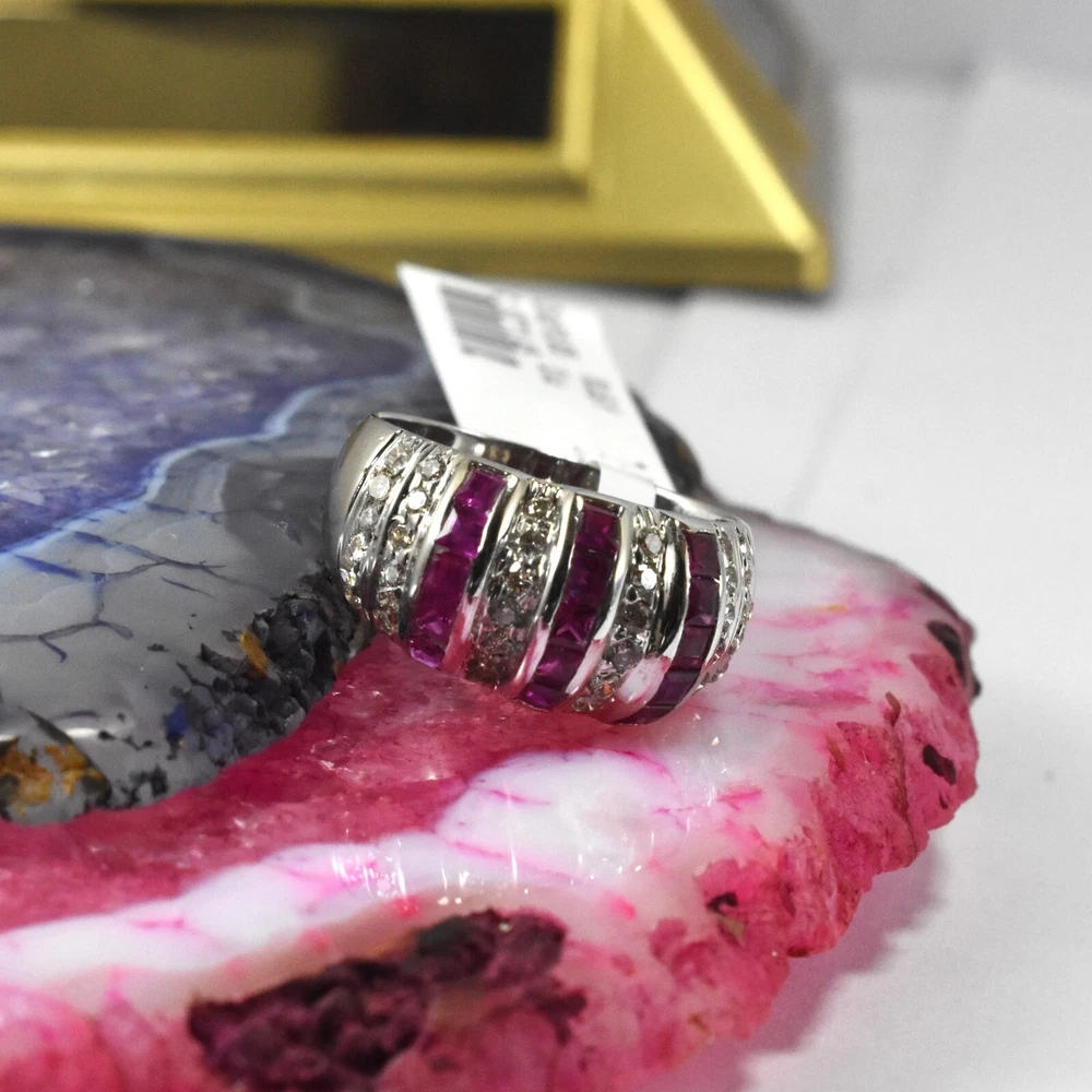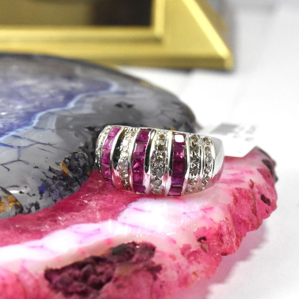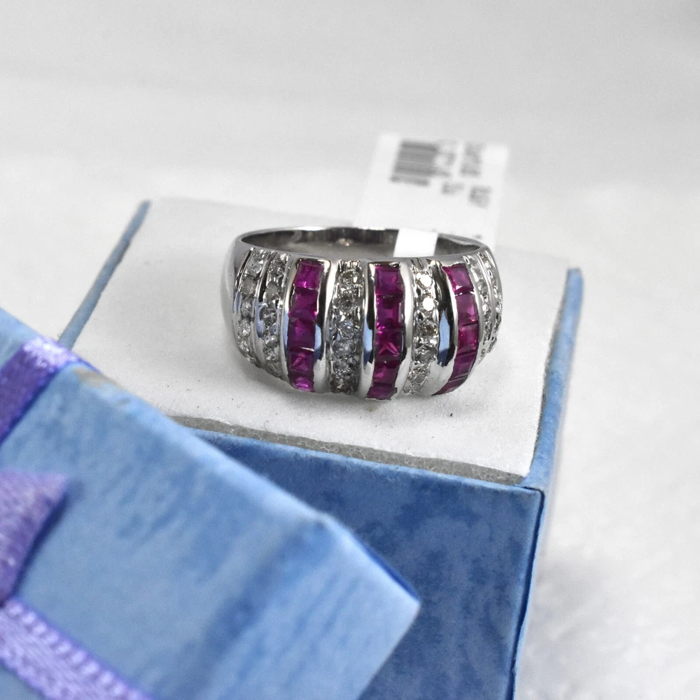 Brand:- ABHANER GEMS Base Material :- 925 Sterling Silver Gross Weight:- 4.270gm Gemstone:- Ruby and Diamond Gemstone Shape:- Baguette and Round Gemstone Weight :- 1.45ct And 0.65ct Gemstone Origin :- Natural Ring Size :- All Sizes Available Metal:- 925 Sterling Silver ( We also make in gold so please feel free ask us if you want) Order:- We Take Custom And Bulk Orders PLEASE GIVE YOUR OPENION OR FEEDBACK ABOUT THE PRODUCT. Our first rule is to serve the costumer with best we can in the best way possible as we prefer to give the best quality at the most affordable price. Size:-All Size Available as we are factory people we can make any design in any shape with any gemstone you want all you have to do is just tell us what you want and we will serve you with the best we can. please remember we are small manufacturers so we give the best in best price because there is no middle man to cost you extra. Metal:- Most of our jewelry is in 14K , 18K some are also in White Gold and Yellow Gold. we can make make jewelry according to your need. Gemstone :- We use 100% Natural gems stone so you do not have to worry about fake stones. you can get it checked in any laboratory if it is not that we will give you 200% percent money back Making: - we are operating from Jaipur as we here are working from a very long time so we use traditional handmade ways to make most of our jewelry. COSTUMER SERVICE If You Have Any Problem Feel Free To Contact Us anytime you want as we are always here to serve you with the best we can It's a perfect gift for you and your loving ones it's quite comfortable for wearing and suitable for all occasions styles and ages. All the items in my shop are Made in our own factory, you can design your own jewelry and let me make it as your design, In addition, we can make special and meaningful jewelry for you. It is nicely made with love and passion for every buyer and we are proud of our products. SHIPPING INFORMATION All orders are shipped by us within 3-5 business days. as All the items in our shop is Made in our own factory therefore carefully and professionally made as per our Quality Standard, sometimes we need some extra time to produce an item as we believe in costumer satisfaction. Once ready, they will be shipped and we will make you available with the Online Tracking. Shipping takes around then 1-3 weeks to reach you. We will inform you once the item leaves so you can Track it. Each Item is Fully Insured in Transit so please do not worry about damage or loss. You are Covered. PAYMENT INFORMATION We accept all the available Payments for your convenience. Please contact us if you wish to Get a support or help.