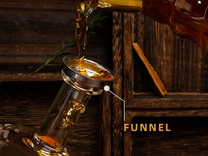 Brand: Does not apply Color: Dark Brown Has Lid: Yes Item Shape: Round Weight: 3.47 Pounds Included Components: Glasses, Funnel, Tray, Stopper Material: Crystal Package Dimensions LxWxH: 14.76x10.98x6.57 Inches Type: Does not apply UPC: Does not apply gtin13: Does not apply Size: 2 Glasses Style: 2 Glasses