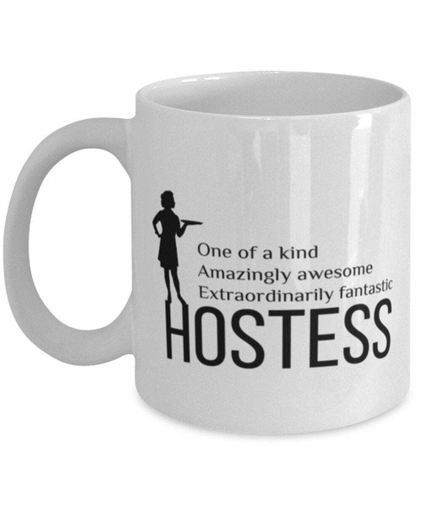 Hostess Funny Coffee Mug One Of A Kind Amazingly Awesome Extraordinarily Mug Product Details.. This high quality 11oz. ceramic white mug has a premium hard coat that provides crisp and vibrant color reproduction sure to last for years. Perfect for all hot & cold beverages. The highest quality printing possible is used. It will never fade no matter how many times you wash it. Material: 100% Ceramic. Print both sides. Dishwasher and Microwave Safe. High Gloss + Premium White Finish. Printed in the U.S.A. Personalized & Custom. We support personalized and custom mug to add custom, when placing an order, you can add notes to the "order note" in shipping address section. Also you can contact us directly via message. Shipping Info. Ready to ship in 1 to 2 business days, All products are made-to-order and proudly printed in the United States. Shipped by USPS and DHL, You will receive your order in 5-7 days. Replace & Refund. All products are defective during shipping broken, chipped will be replaced free of charge. You are not satisfied with the product, we will refund 100% money to you. If any other issues arise, please do not hesitate to message, we would be more than happy to assist you.