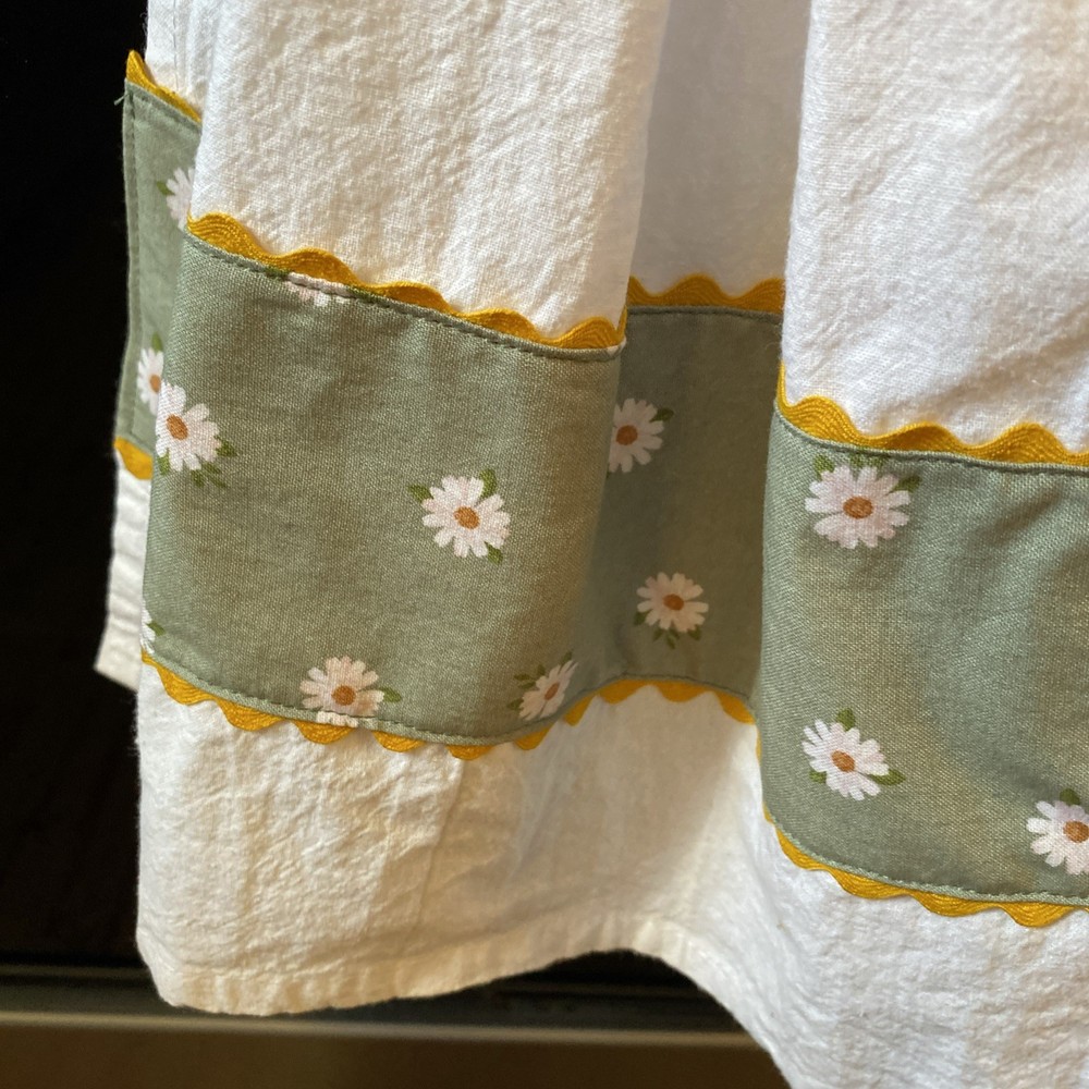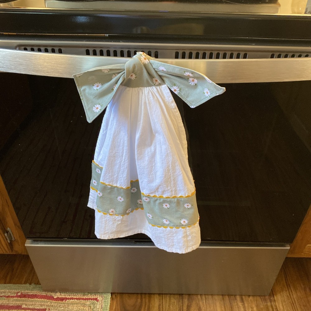 Unique designed Easy to tie up kitchen tea towel easy to remove. Stays right where you need it. Who don’t like to decorate the kitchen with something usable. Crafted from high-quality soft flour sack material. Throw them in the washer and dryer iron if needed easy to care for. Please check out other items I have listed. As always thank you for looking !!