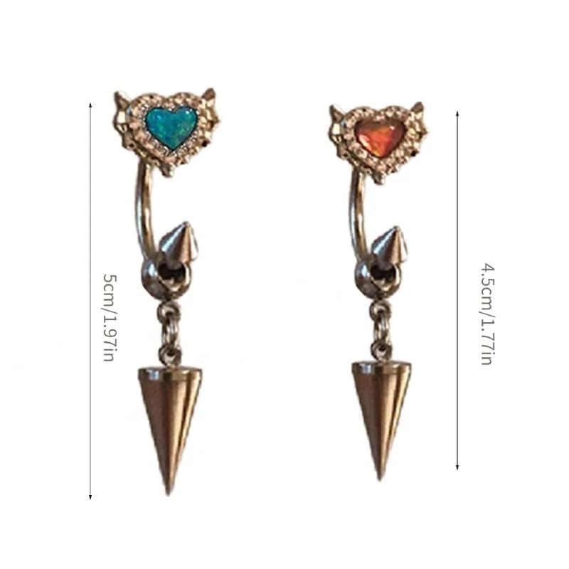 Features: Unleash your inner with earbone nails, a blend of sweet and edgy for the fashion forward individual. Crafted from alloy, these earbone nails feature a unique heart shaped devil pendant and horseshoe designs that resists fading and maintains its cool gothic charm. for women who embraces their uniqueness and are fans of punk gothic accessories, these earrings cater to those who dare to stand out. Whether you're dressing up for a party, heading out on a date, or simply accentuating your daily outfit, these ear studs add a touch of personality to any occasion. Transform your narrative with ear bone studs, accessory that speaks volumes about your taste. Specifications: Texture: Alloy Color: Orange/Blue Blue Length: Approx. 1.97inch(5cm) Orange Length: Approx. 1.77inch(4.5cm) Package Includes: 1Piece Earring note: Please allow 1-2cm errors due to manual measurement. Due to the differences between different monitors, the picture may not reflect the actual color from the item.