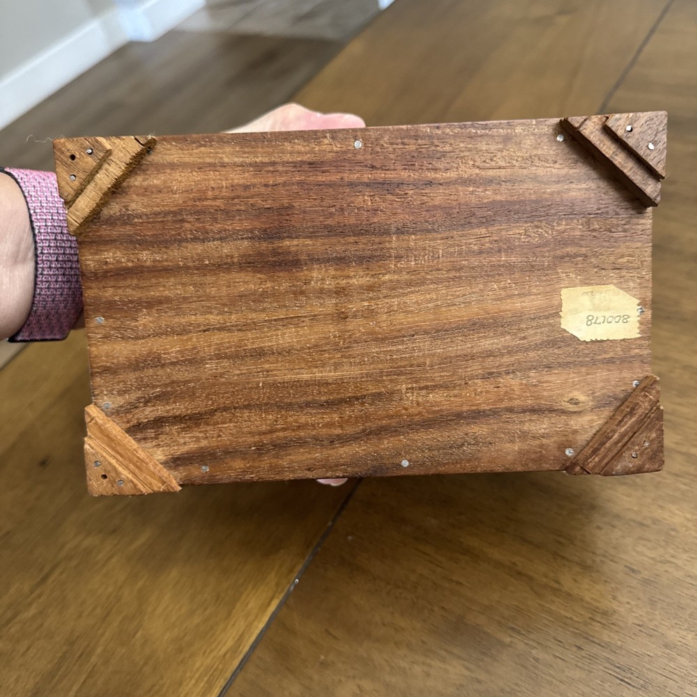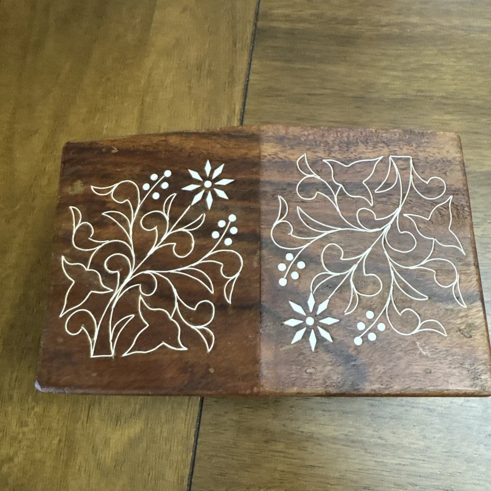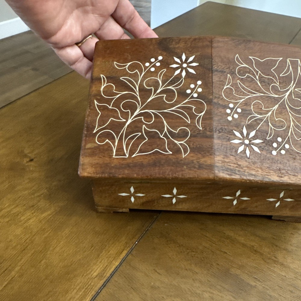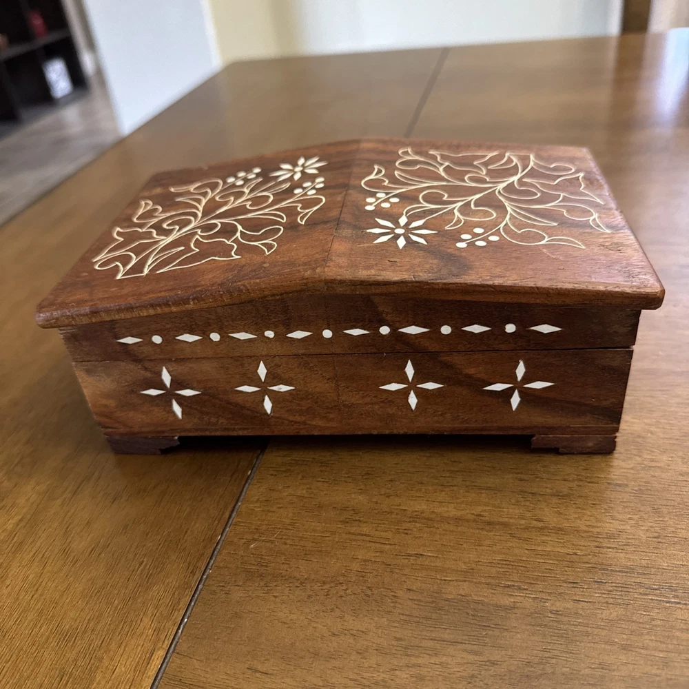 This wooden jewelry storage box is shaped like a rectangle and handmade, making it a unique and personalized addition to any room. The box is a rich brown color and features a classic design that is perfect for all occasions. With dimensions of 7.5 x 5 x 3 inches, it is the perfect size for storing small trinkets or keepsakes. This original storage box is a part of the Keepsake Boxes collection and comes packaged in a box, making it a great gift for adults who appreciate artisanal items.