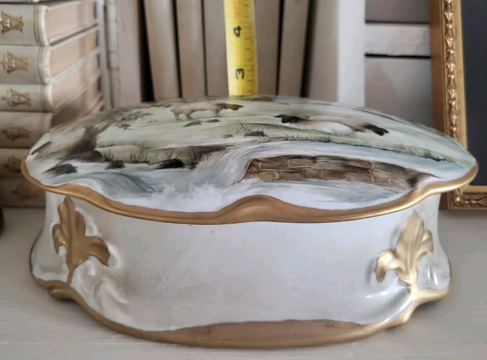 Unique Large Hand-Painted Porcelain Trinket Box with French Scene Lid