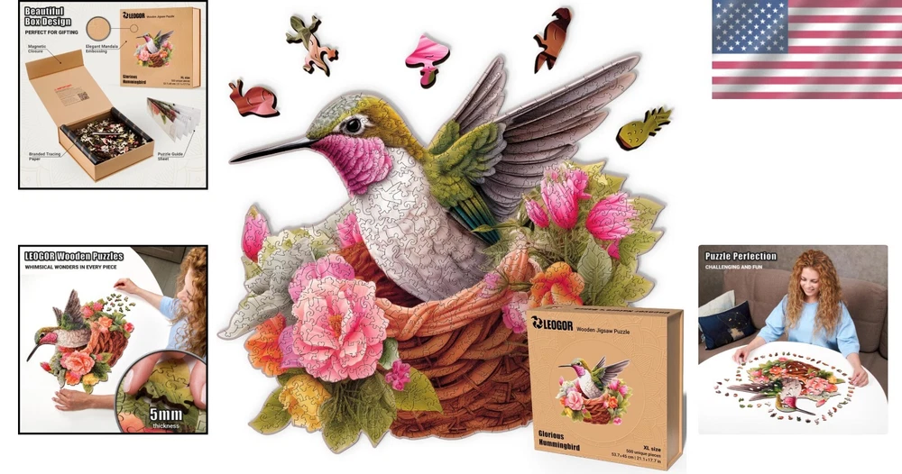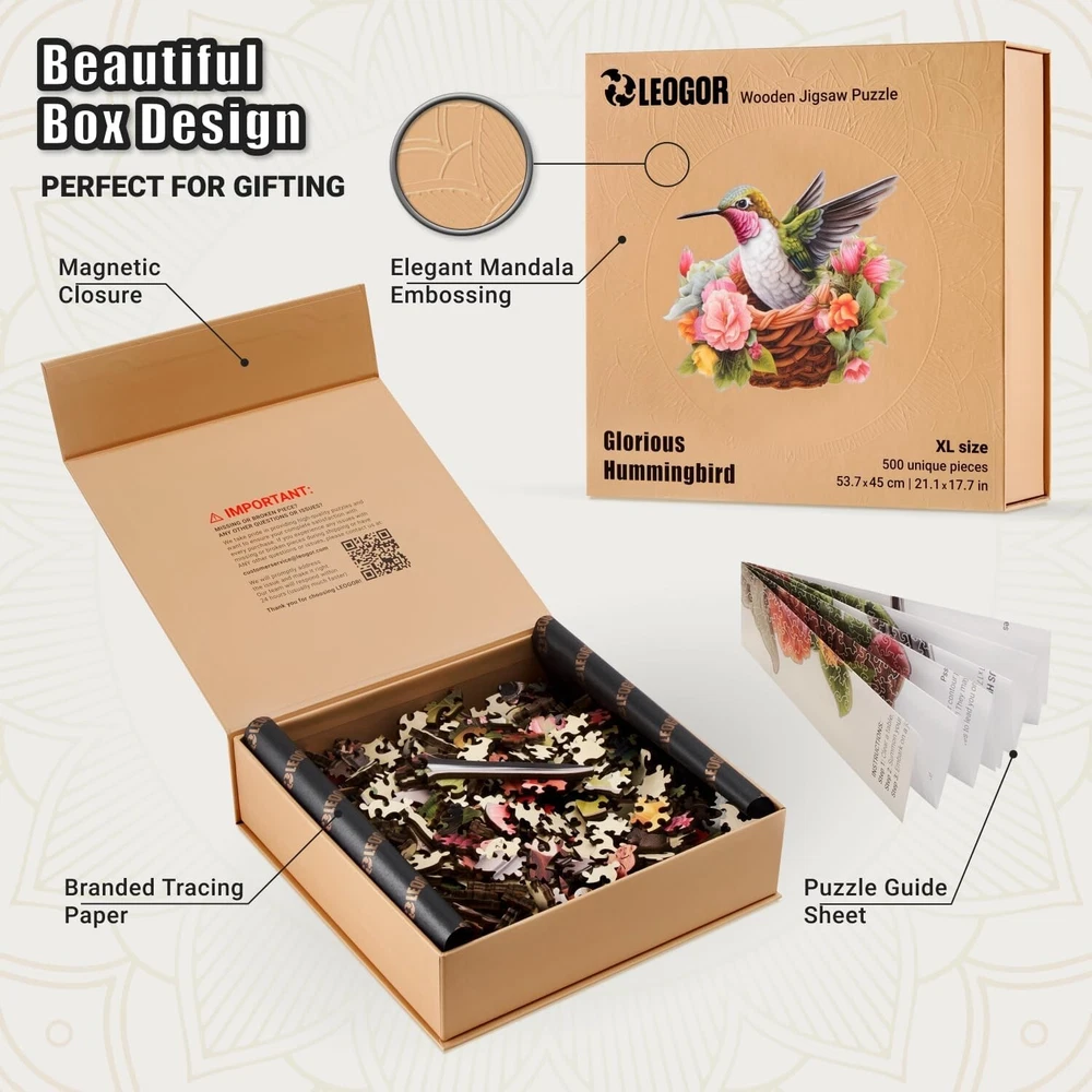 Unique Laser-Cut Hummingbird Jigsaw Puzzle for Adults - 500 Eco-Friendly Pieces