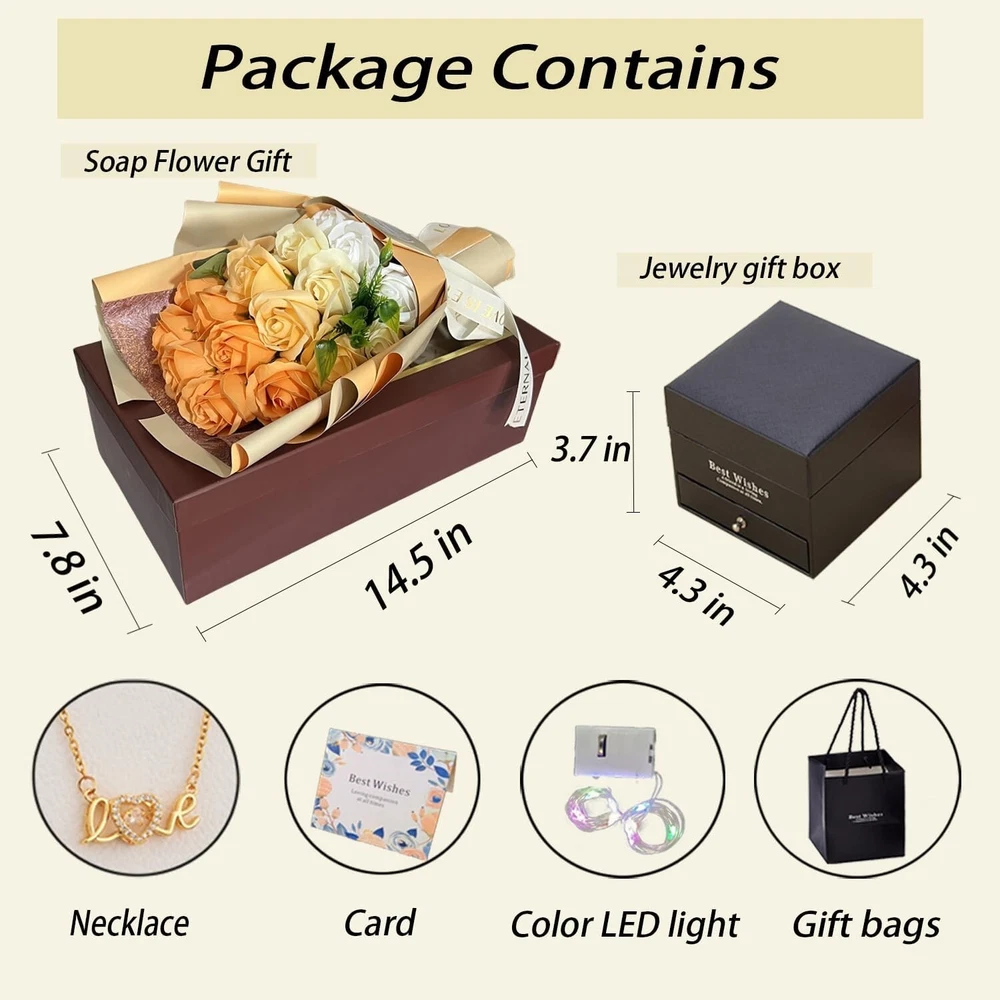 Unique Red Rose Flower Gift with Love Necklace & Elegant Gift Box Presentation ‹ › ‹ › ‹ › ‹ › ‹ › ‹ › ‹ › ‹ › ‹ › ‹ › Unique Red Rose Flower Gift with Love Necklace & Elegant Gift Box Presentation Make a memorable gesture of love with this exquisite gift that is ideal for various occasions including Valentine's Day, Mother's Day, anniversaries, and more. Truly a gift of romance and elegance, this set combines the beauty of a rose bouquet with a stunning necklace, all packaged in a luxurious gift box. Features: Valentine's Day Gift: Ideal for proposals, this all-in-one gift comes with flowers, a box, and a necklace, eliminating the need for additional packaging. Mother's Day Gifts for Mom: An impressive bouquet that shows your love, respect, and appreciation for the special women in your life. Material and Package: Featuring 18 beautifully crafted soap flowers that smell delightful, complete with a light for an enchanting display. Premium Gift Box: Elegantly packaged, making it an ideal gift for special moments such as anniversaries, birthdays, and weddings. Benefits: Two gifts in one – flowers and a LOVE necklace. Soap flowers mean they last longer than traditional flowers; perfect as a keepsake. Exquisite packaging makes gifting effortless and elegant. Perfect for expressing love, appreciation, and affection to loved ones. Why choose the Unique Red Rose Flower Gift? This stunning rose flower gift sets itself apart with its combination of beauty and practicality. Not only does it deliver a lasting sentiment with its soap flowers, but it also includes a beautiful LOVE necklace, all neatly packaged in a premium gift box. It offers a meaningful way to show your feelings without the hassle of extra gift-wrapping. Surprise someone special today with this enchanting gift that is bound to leave a lasting impression! Shipping Free & Fast Shipping - We offer free shipping to most of the USA with a normal delivery time of 3-7 days. However, due to the current situation, additional delivery time (up to 3 weeks) may be required for some items. Alternative Carriers - We may use alternative carriers (e.g. USPS, FedEx, UPS, etc.) to ensure your package arrives safely and on time. Due to the use of multiple carriers, we are unable to provide a tracking number automatically. Handling Time - Orders are processed and shipped within 1-2 business days of receiving cleared payment. Shipping Restrictions - Shipping to Alaska, Hawaii, Puerto Rico, Guam, and other US territories may incur shipping charges or delivery restrictions. Please contact us before ordering, or your order can be refunded/cancelled. State Restrictions - There may be restrictions based on your state of purchase. For example, certain items may not be shipped to California due to state regulations. Contact for Tracking Updates - If you require tracking updates or have any concerns about the delivery of your order, please feel free to contact us, and we will be happy to assist you. Return 30-Day Hassle-Free Returns - We want you to be completely satisfied with your purchase. If you are not, you can return the item within 30 days of receiving it for a full refund or exchange. Easy Return Process - To start a return, simply contact us and we will provide you with a prepaid return shipping label and detailed instructions. Restocking Fee - There are no restocking fees for returns. However, the buyer is responsible for return shipping costs if the return is not due to a seller's error. Refund Processing Time - Refunds will be processed within 5 business days of receiving the returned item in its original condition. Payment We accept all major credit cards, PayPal, and Apple Pay for your convenience. Your payment information is secure and encrypted to ensure a safe and seamless transaction. Please complete your payment within 3 days of purchase to avoid any delays in shipping. Feedback Your feedback is extremely important to us. We strive to provide the best products and customer service possible. If you are satisfied with your purchase, please take a moment to leave us a positive review. If you have any concerns or issues with your order, please contact us before leaving negative feedback. We are committed to resolving any problems and ensuring your satisfaction. Contact Us If you have any questions or concerns, please feel free to reach out to our customer support team. You can contact us through the eBay messaging system. We are available Monday to Friday, 9:00 am to 5:00 pm EST, and we will do our best to respond to your inquiry within 24 hours. Buy it now and enjoy a pleasant shopping experience! UPC: Not Set Item Width: Not Set Unit Quantity: Not Set Material: Mixed Materials,Paper,Soap Flowers Common Name: Rose Brand: Unbranded Product: Artificial Flower Bouquet with Necklace Type: Flower Bouquet Artificial/Fresh: Artificial Form: Bunch Color: Orange Occasion: Valentine's Day MPN: Not Set Theme: Not Set Size: 14 in Country/Region of Manufacture: Not Set Item Height: Not Set Number in Pack: 1 Unit Type: lb Personalize: Not Set Personalized: Not Set