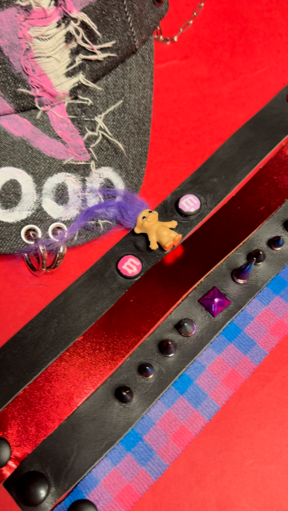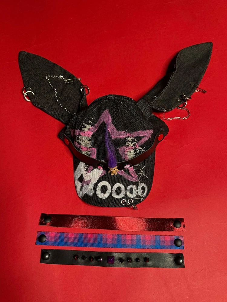 Take your festival, streetwear, or punk-inspired look to the next level with this one-of-a-kind upcycled cap + pin set! DETAILS: This pre-loved baseball cap features a bold print, studs, and piercings, giving it an effortlessly cool edge. Our creative team added four unique pins, designed to be easily attached or removed from the front of the cap—so you can switch up your style anytime. One size fits all with an adjustable back for the perfect fit. STYLING: Pair it with oversized hoodies, ripped denim, and combat boots for a bold street-style vibe, or rock it with festival-ready layers and statement accessories. For a punk-inspired edge, style it with a leather jacket, plaid pants, and platform boots. ABOUT US: we're the sustainable fashion styling blog you've been dreaming of. Our mission? To make the world a more mindful, stylish, and eco-friendly place, one outfit at a time. When you shop at Sparkpick, you're not just snagging a piece of clothing – you're becoming part of a movement. A movement that shouts "heck yes!" to sustainability, minimalism, self-expression, and all the good stuff like the Fashion Revolution. SUSTAINABILITY: We're not stopping at just looking good; we're all about doing good. We're talking carbon emissions offsetting with Klima and planting trees like it's nobody's business through One Tree Planted. And because we're all about wrapping things up nicely, our garments come in recyclable boxes that are made from post-consumer waste.