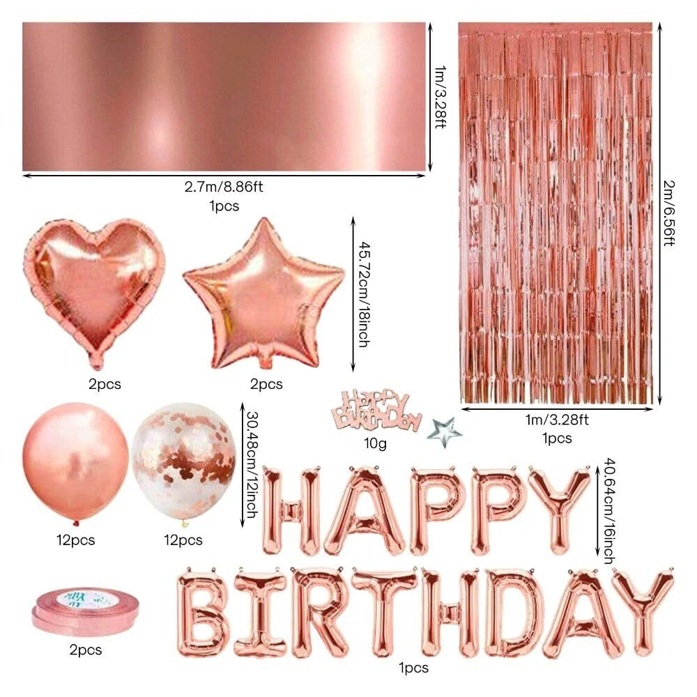 Uniquer Rose Gold Pink Birthday Party Decoration, Birthday Banner Fringe Curtain Tablecloth Foil Balloons Confetti Latex Balloons for Women Girl Birthday Party(rose gold) Quantity: 41pcs balloons Material: Latex, Foil Design: Rose Gold or Pink Birthday Party Decoration Rose Gold Party Decoration Package Inclusion: Happy Birthday Balloon Banner (1 set - 16in):Make a statement with a stunning 16in Happy Birthday Balloon Banner, featuring 13 balloons for a chic and celebratory touch Heart Foil Balloons (2pcs - 18in):Accentuate your décor with two charming 18in Heart Foil Balloons, adding a romantic flair to the overall atmosphere Star Foil Balloons (2pcs - 18in):Enhance the celestial theme with two 18in Star Foil Balloons Rose Gold Latex Balloons (12pcs-12in):Infuse elegance into your party space with 12 Rose Gold Latex Balloons, setting the tone for a sophisticated and stylish birthday event Rose Gold Confetti Balloons (12pcs-12in):Add a touch of glamour with 12 Rose Gold Confetti Balloons Rose Gold Fringe Curtain (1pc-1x2m):Elevate your backdrop with a luxurious 1x2m Rose Gold Fringe Curtain, creating a visually stunning atmosphere for memorable moments Rose Gold Tablecloth (1pc-1x2.7m):Complete the look with a 1x2.7m Rose Gold Tablecloth, adding a touch of opulence to your party table setup Ribbons (2pcs - 10m each):Ensure easy and versatile décor arrangements with two 10m Ribbons, allowing you to customize and hang balloons effortlessly Rose Gold Confetti (10g):Scatter 10g of Rose Gold Confetti to add a sparkling and celebratory touch Pink Party Decoration Package Inclusion: Happy Birthday Balloon Banner (1 set - 16in) Heart Foil Balloons (2pcs - 18in) Star Foil Balloons (2pcs - 18in) Pink Latex Balloons (8pcs - 12in) White Latex Balloons (8pcs - 12in) Pink Confetti Balloons (8pcs - 12in) Pink Fringe Curtain (1pc - 1x2m) Pink Tablecloth (1pc - 1x2.7m) Ribbons (2pcs - 10m each) Pink Gold Confetti (10g) Dazzling Variety: Elevate your celebration with 41 stunning balloons, including heart and star foil balloons, Rose Gold or Pink latex balloons, and mesmerizing confetti-filled balloons. Good for a glamorous birthday bash Versatile Color Choices: Choose between the chic Rose Gold or the classic Pink theme. Both options feature coordinated decorations, ensuring your party venue is bathed in an enchanting hue that suits any woman or girl's taste All-Inclusive Decor Set: Our package includes everything you need for a fabulous setup. From a trendy Happy Birthday banner to a shimmering Fringe Curtain and Tablecloth, each item is carefully curated for a cohesive and Instagram-worthy party Easy Assembly: Unleash your creativity effortlessly. Each set comes with user-friendly instructions, making assembly a breeze Quality That Shines: Crafted from high-quality latex and foil materials, our balloons are durable and long-lasting. Create a mesmerizing atmosphere that captivates guests, leaving a lasting impression of a joyous and stylish celebration Shipping from the USA All of our products are shipped from the USA, ensuring quick delivery to your destination. Payment We offer the following payment methods: PayPal, credit card, bank transfer, and eBay's secure payment system. Free Shipping & Free Returns Shipping within the USA is FREE. Additionally, any return is absolutely free for you. Risk-Free Purchase You have the option to return an item within 30 days without any justification. We cover the return shipping costs! Fast Shipping We ship immediately upon receipt of payment. Generally, the package is delivered within 2-3 days in the USA. If it takes longer, we will contact you. Quality and Costs Made in Europe, USA, China No customs fees or additional charges Total satisfaction guarantee Invoice with declared VAT available upon request in .pdf format Feedback Your feedback is very important to us. After you pay for your purchase, you will automatically receive positive feedback from us.