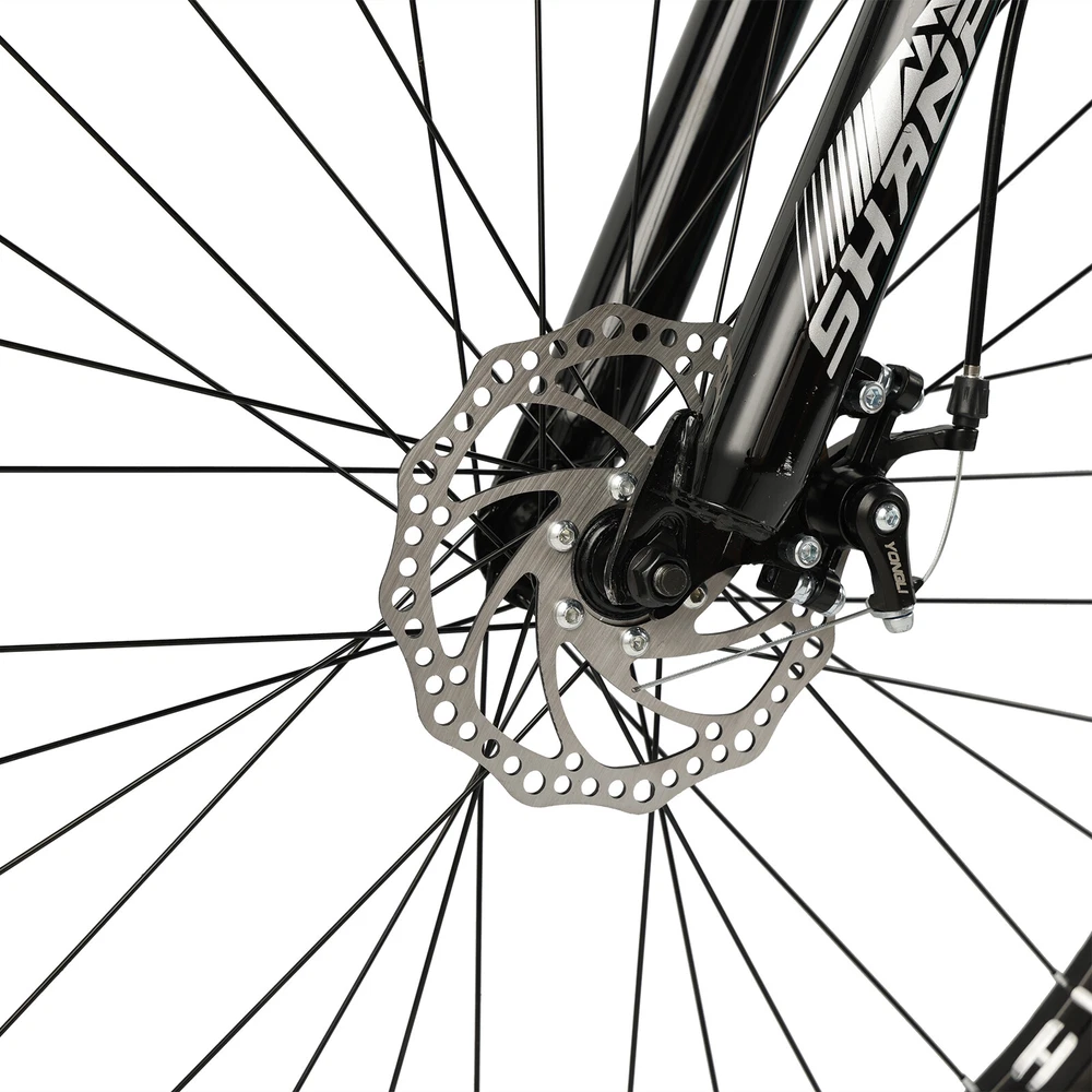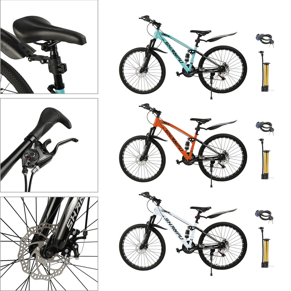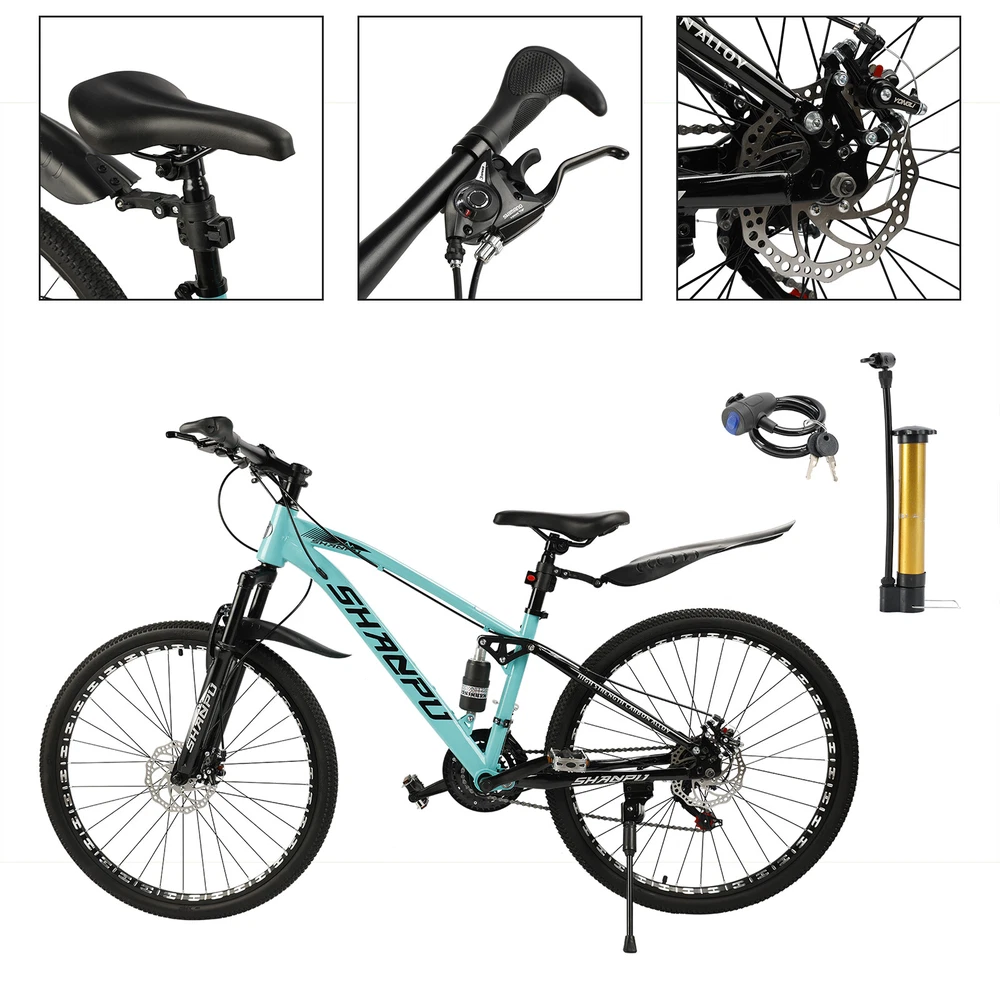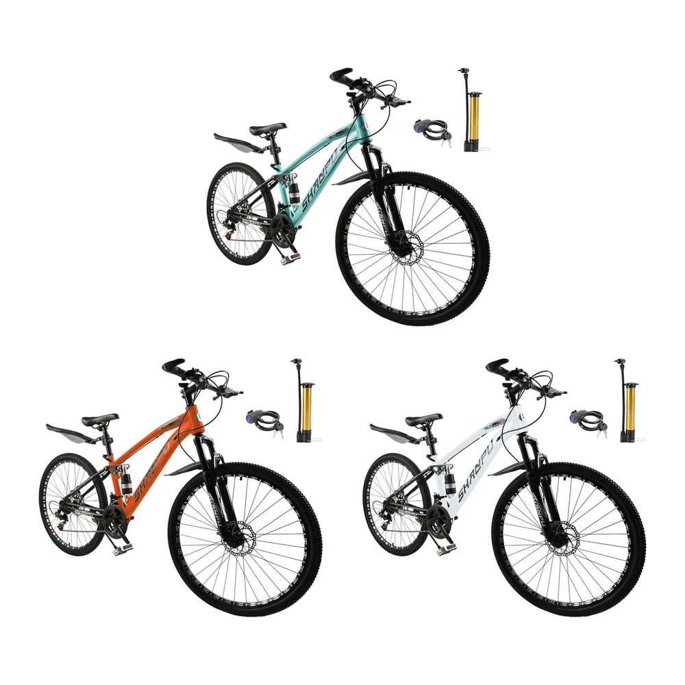 This mountain bike is an absolute game-changer! The 26-inch frame makes it super comfortable for both teens and adults, whether you're hitting trails or cruising through the city. The full suspension smooths out bumps effortlessly, and the disc brakes give reliable stopping power. Love that it comes mostly pre-assembled—setup was a breeze. Perfect for commuting, weekend adventures, or just staying active. The sleek design turns headsoric while being super functional. Definitely worth for anyone looking for a versatile, high-quality ride!