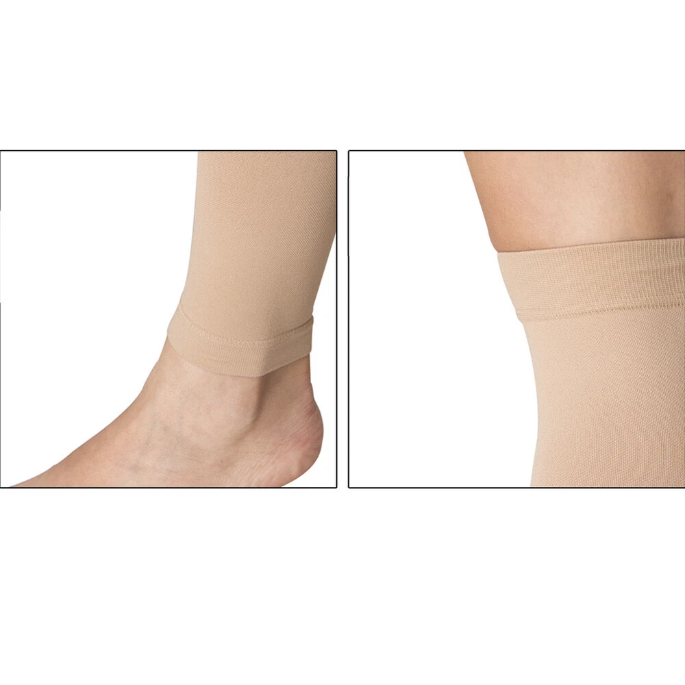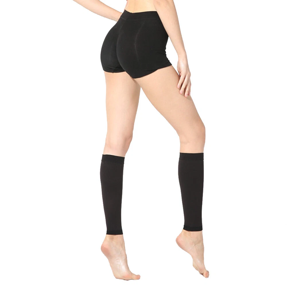 Item Description: Material: Lycra Color: Beige/Black Compression Strength: 23-32 mmHg (Class II) Typical Applications: Moderate edema, Lymphedema, Post-surgery, Pregnancy, Moderate varicose veins, Deep Vein Thrombosis(DVT) Why you need compression socks? If you've suffered with varicose veins for a long time, you'll be familiar with soreness, swelling and fatigue on your aching leg. Varicose veins appear when the one-way valves in your veins fail and allow blood to leak backward. It's the pooling of blood because of this valve failure that causes the squiggly, bulging blue veins to pop out. Our compression socks can help relieve from varicose veins, promoting blood and oxygen circulation more effectively, preventing cramping, fatigue, stiffness and swelling, faster recovery. How compression socks work? Our medical compression socks has strict compression level of each key measuring point. The graduated compression provides maximum compression at the ankle with a progressive reduction through the calf, which enhance the return of venous blood to the heart. Who can benefit from compression socks? Long-distance travellers Aircraft flight related practitioner Professionals involving prolonged sitting / standing in one place Sufferers of varicose veins & related venous disorders Pregnant women with lower limb edema Which compression class should I choose? A higher level of compression requires more physical strength to don and doff. Higher level is tighter. If you are unsure, we recommend you to consult your physician for the appropriate level of compression, as noted in mmHg value. Warm Tips: 1.If conditions permit, we strongly recommend purchasing 2 pairs to replace, as double its life for each pair. Don't wear a single pair for more than 3 days, because a long time wear will affect the recovery of elastic socks. 2.Better to wear your compression stockings during the day and take them off before going to bed. Washing Instruction: 1.It's imperative that the garment is washed after each use. Washing brings back the elasticity to the socks. 2.To prolong the garment life, hand wash with warm water (below 30℃) and mild laundry soap or detergent. Use chloride-free bleach. Do not wring out, gently squeeze excess water to hang and air-dry. Do not dry clean or iron. Package Includes: 1 Pair Unisex Compression Calf Sleeves