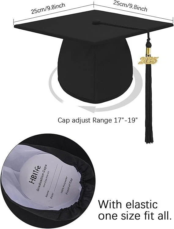 Unisex Matte Graduation Cap with Tassel Adjustable for High School and College Color: Black, Royal Blue Fabric type: Polyester Care instructions: Hand Wash Only 100% High Quality Matte Polyester,One Size Fits All, for Bachelor High School, Middle School and College Elementary Graduation Ceremony. This is Adjustable Student Black Graduation Cap with Tassel Adult Graduation Party Hat Fancy Dress Accessory. Measurement: Top of cap measures 9.7"x9.7",Head Circumference:About 22-24.4 Inches. The Direction of Tassel is Adjustable and The Charm is Easy Movevable,Just Change Any Year Do You Want.Note-card: Write down your name and date to commemorate graduation day Return Policy: We offer a 30 day return policy from the receiving date. Please contact us for a Free Return Label. Please use our return label so it will go back to our supplier and we can do a refund or replacement afterwards. Feedback: Your satisfaction is very important to us! If you have any problem with your order, please contact us and we will do our very best to make you satisfied. As long as you are happy with your purchase, please leave a positive feedback for us. We will always leave you a positive feedback in return. If you have any problem with your purchase, please do not leave a negative feedback. Please Contact us ... and your issue will be solved quickly and positively We are a small family-owned business trying to make a living, not a huge company that does not care ... We will ALWAYS do our best for you!
