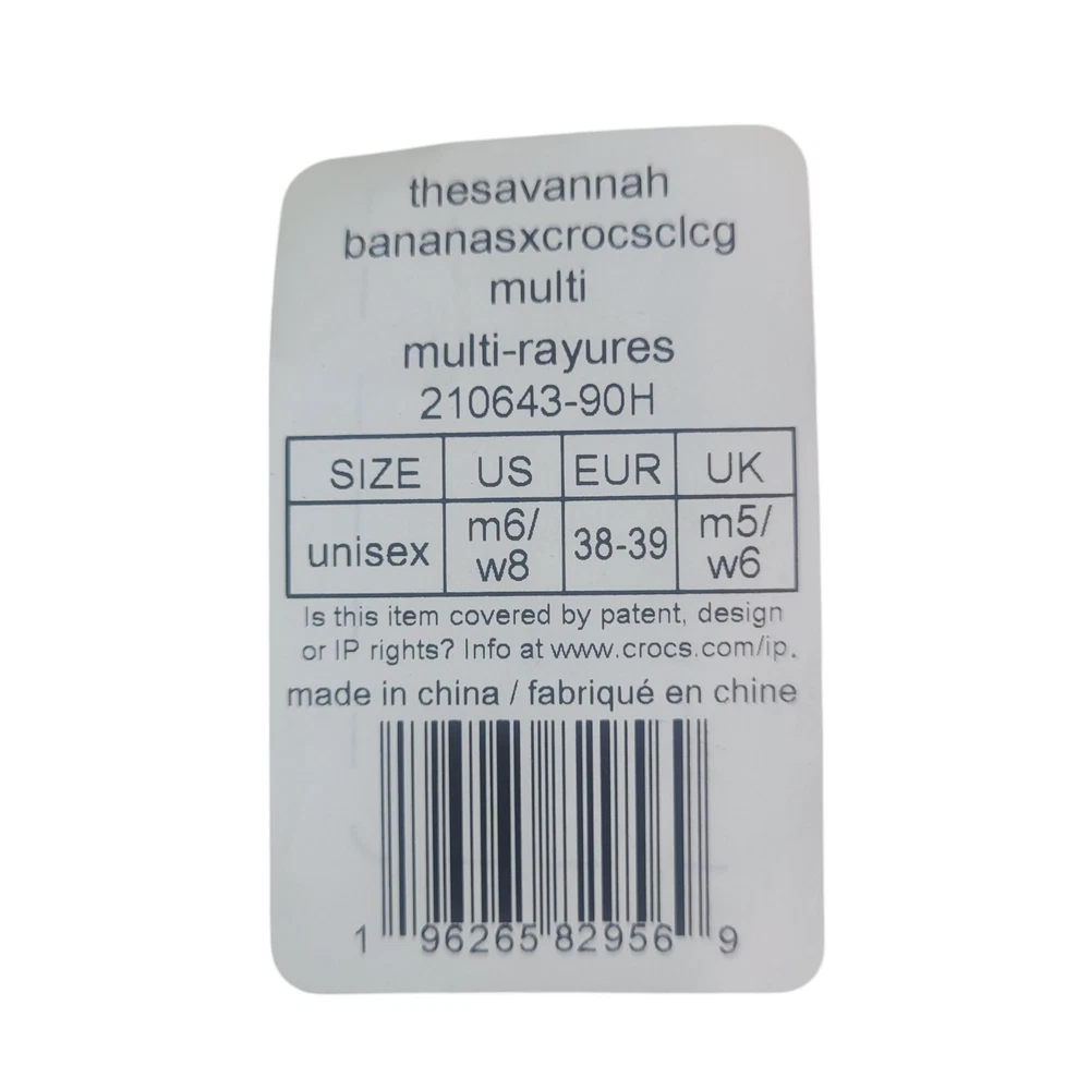 Theme: Sports, Baseball MPN: 210643-90H Outsole Material: Rubber Upper Material: Synthetic Style: Clog Season: Fall, Spring, Summer Lining Material: Synthetic Insole Material: Rubber Pattern: AOP Closure: Slip On US Shoe Size: M6/W8 Brand: Crocs Model: Crocs Savannah Bananas Baseball Department: Unisex Adults Toe Shape: Round Toe Type: Casual Features: Breathable, Comfort, Lightweight Character: Savannah Bananas x Crocs Vintage: No Color: White gtin13: 0196265829576 Accents: Logo Occasion: Casual, Travel Product Line: Comfort Slide Shoe Width: Standard UPC: 0196265829576