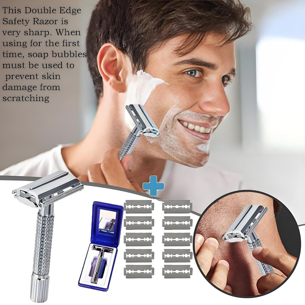 Unisex Double Edge Safety Razor with 10 Platinum Coated Stainless Steel Blades