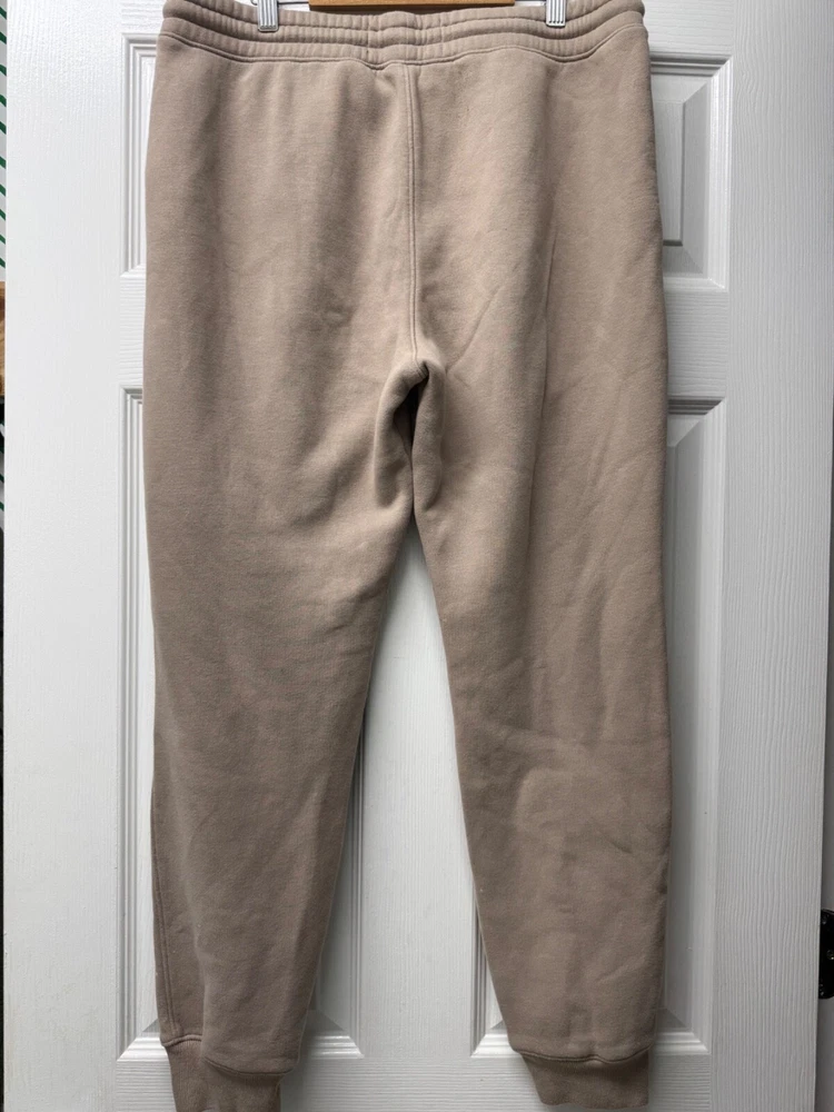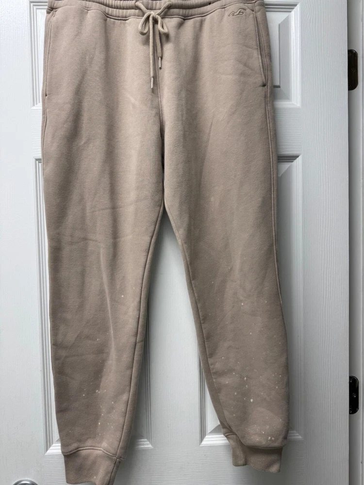 Season: Fall, Spring, Winter Occasion: Casual, Travel Style: Jogger Fit: Relaxed Material: Cotton Blend Pattern: Solid Closure: Drawstring, Pull On Size Type: Regular Features: Lined Rise: High (Greater than 10.5 in) Vintage: No Size: M Accents: Logo Brand: Hollister Type: Pants Garment Care: Machine Washable Department: Women Color: Brown Fabric Type: Fleece Leg Style: Tapered