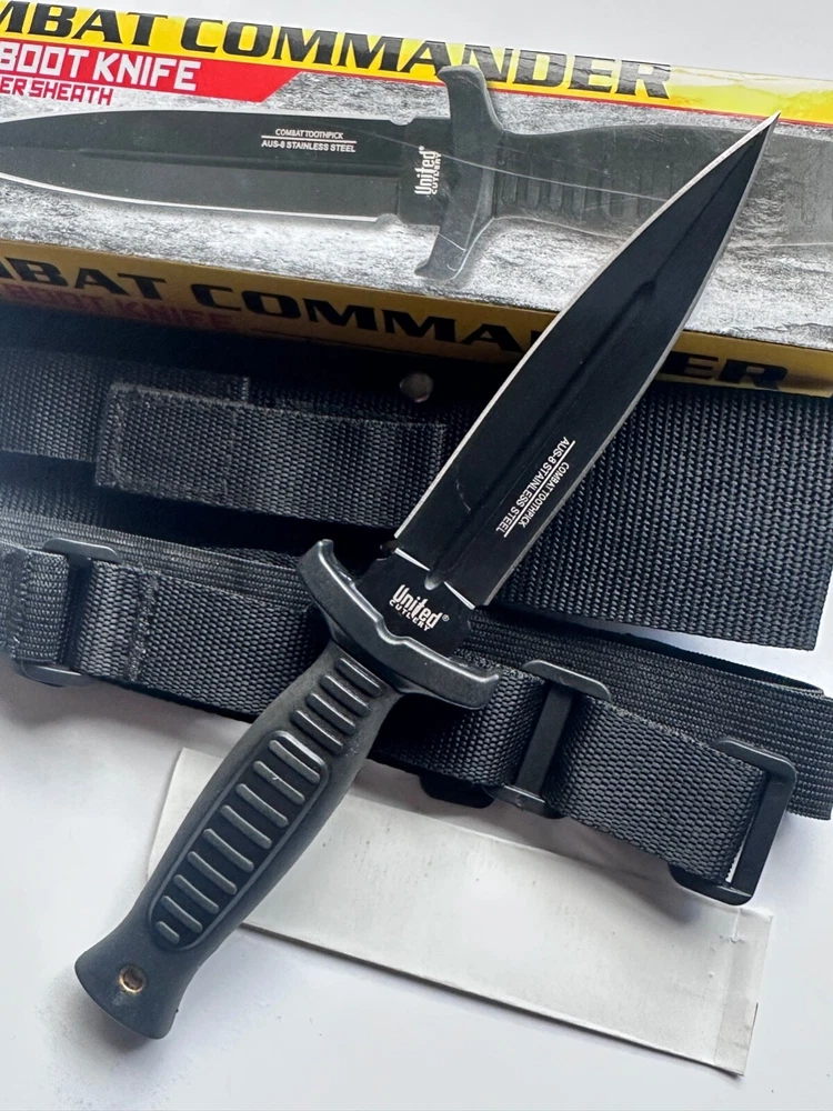 T is for Toys Description: Up for bid is one Combat Commander Black Boot Knife and sheath. Condition: New Old Stock. Notes: Shipping Options United States : USPS Media Mail(3 to 9 days ETA), USPS Priority Mail(2-3 days ETA ) and USPS Express Mail/Next Day. International :All of our international orders are shipped out through eBay's Global Shipping Program. Combined Shipping We combine shipping on all orders, regardless of quantity or location. If you have any specific questions or requests, please feel free to let us know. The Terms All of our items are guaranteed as described and are offered on an “as is” basis with no warranty privileges implied. Returns are always accepted, provided the item is returned in the same shape and condition it left in. If you have any questions about shipping, local order pick-ups, alternate payment options, please feel free to let us know, we will get back to you as soon as possible. As always, all of our items are from a pet and smoke free home.