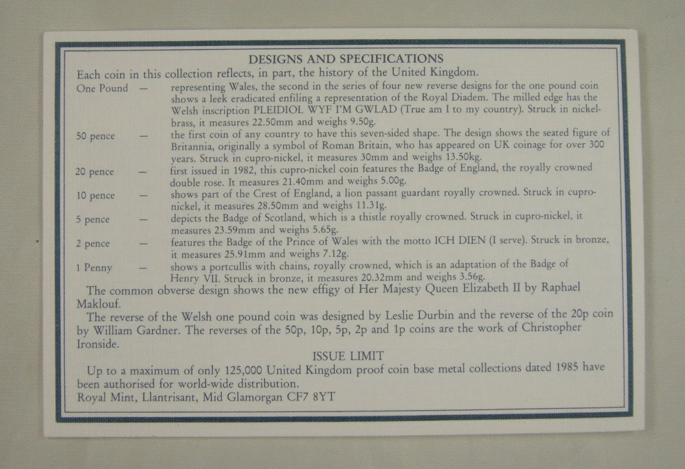 NOW YOU ARE BIDDING ON United Kingdom Proof Coin Collection 1985, Royal Mint We insure the safety of every item. We will ship all items via CHINA POST within 1 business day after the payment is received. We just ship the item to your shipping address on Online Payment. It will take about 15-25 days to arrive for USA and worldwide . We promise that the buyer doesn’t bear any risk on the way, if the package is damaged, lost or stolen on the delivery, we make the full refund or resend same items. We do not want to give you a bad buying experience even when the shipping is out of our control. Buyers who purchased bulk items or multi-items from my store within 3 days, and need to be arranged as combined shipping with charge discounted , p lease make a combined payment. do NOT send individual payments for each item, I will automatic offer a shipping discount. I accept Online Payment only. Import duties, taxes and charges are not included in the item price or shipping charges, these charges are the buyer’s responsibility. THANK YOU FOR VIEWING AND HAPPY BIDDING! GOD BLESS !!! Track Page Views With Auctiva's FREE Counter
