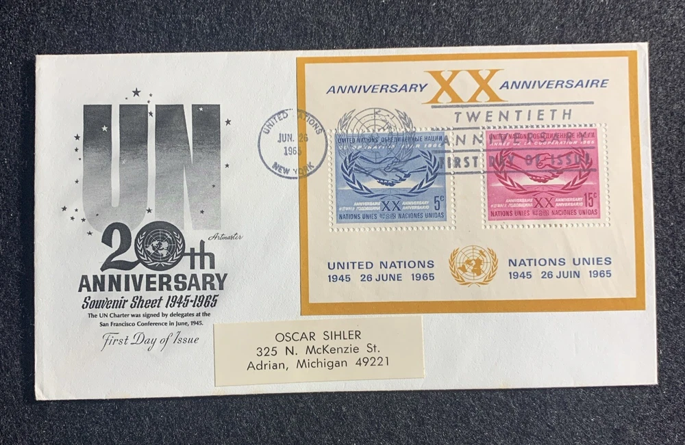 United Nations Non-Cachet First Day Covers. 50 Covers. SC#90-145/C8-C12 (Air Mail). This a mostly complete set of UNITED NATIONS NON-CACHET FDC's from 1961-1965. Scott Catalog #145 is Cachet. Feel free to ask if you have any additional questions, require additional photos, or additional information. Shipping can be combined on any item I sell (see my store Rio-Collect (https://www.ebay.com/str/riocollects). For multiple orders, prices may also be combined and lowered accordingly (i.e. Prices rounded down). Cheers, Rio-Collects _____________________________________________________________________________________________________ Although not officially certified by registered philatelic companies, all stamps in my auctions/sales were acquired through the Post Office or reputable stamp auctions/assayers. Unless otherwise noted, most other stamps were acquired through my father's collection and stamp dealership (Tex-Stamp) which had been in business over a 50 year period. If you require documentation, feel free to ask. For philatelic auctions/sales, I use the following descriptions: SCV: Scott Catalog Value, MI: Michel Catalogue, NF: Nick Follansbee Catalog, Sk. Schatzes Catalog, Yag & Bash, SG: Stanley Gibbons Catalogue...Amongst others. Condition: Mint Never Hinged (MNH): Never hinged, usually with OG from Post Office (i.e like new) Mint Lightly Hinged (MLH): Hinge mark but no hinge remnants Mint Hinged (MH): Not Cancelled with hing or hinge remnants. OG - Original gum PH - Previously hinged H - Hinged DOG - Original gum, disturbed POG - Part original gum NG - Mint No gum NGAI - Unused, no gum as issued (special printing) USED - Used / canceled GEM - Perfectly-balanced margins Post Office Fresh (POF) Superb - Perfectly-balanced normal sized margins, POF XF/S - Not quite perfectly-centered, POF XF - Extremely well-centered margins, POF VF/XF - Almost extremely well-centered, POF VF - Very well-centered, POF F/VF - Margins reasonably clear on all sides F or AVE - Margins just clear on one or more sides VG/F - Perfs touch or cut stamp design slightly VG - Perfs cut into stamp design ________________________________________________________________________________________________________ Feel free to ask if you have any additional questions, require additional photos, or additional information. Shipping can be combined on any item I sell (see my store Rio-Collect (https://www.ebay.com/str/riocollects). For multiple orders, prices may also be combined and lowered accordingly (i.e. Prices rounded down). Cheers, Rio-Collects