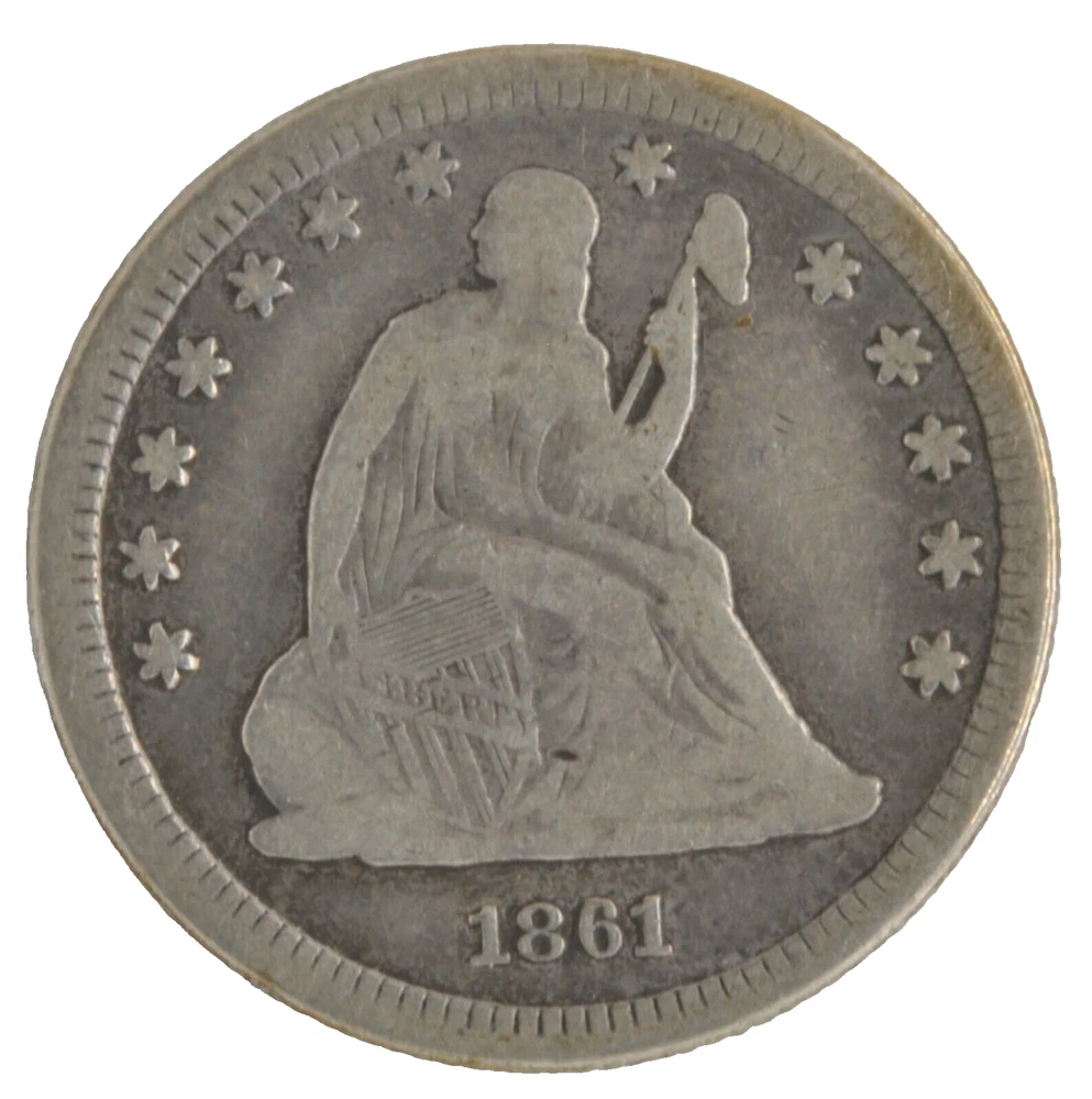 Twin City Gold is pleased to offer this United States 1861 Liberty Seated Quarter 25c 90% Silver Philadelphia Mint Coin Please be sure to view all photos! The coin in the photos is the actual coin available for purchase and the coin you will receive. Review all photos, utilize the zoom feature, this will allow you to judge condition for yourself. Feel free to contact us with any questions, prior to purchase. Browse our other listings to find great deals on estate jewelry, diamonds, coins, collectibles and more!