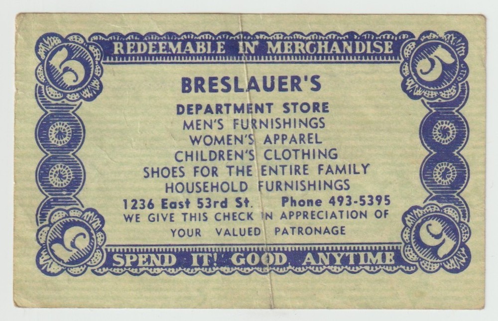 United States - A credit voucher (cash check) redeemable for 5 cents
