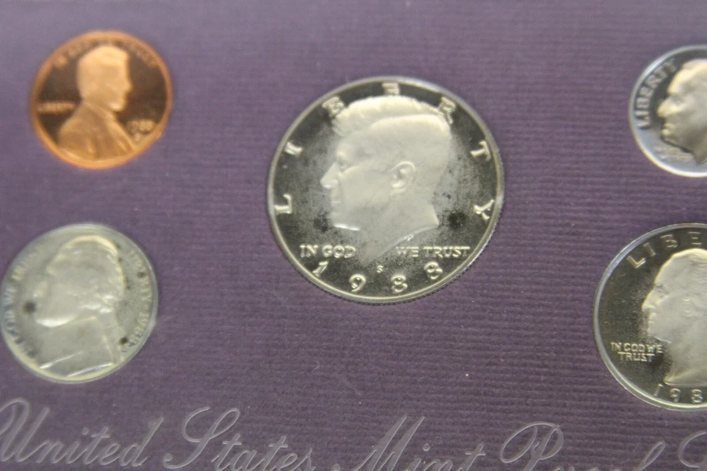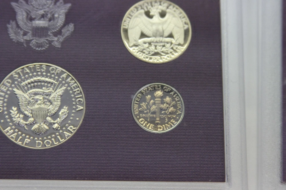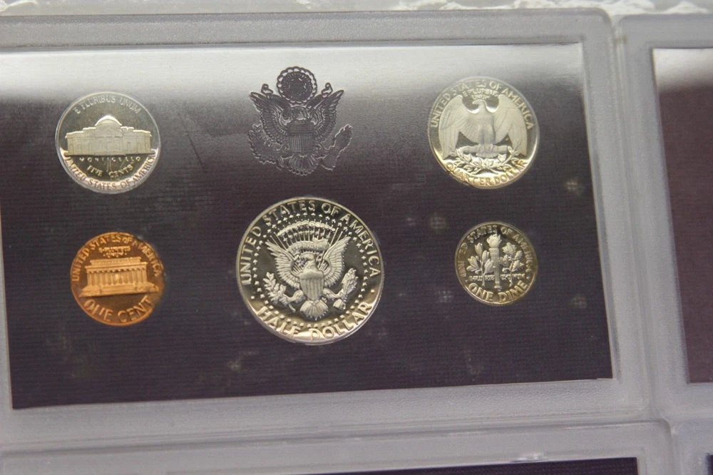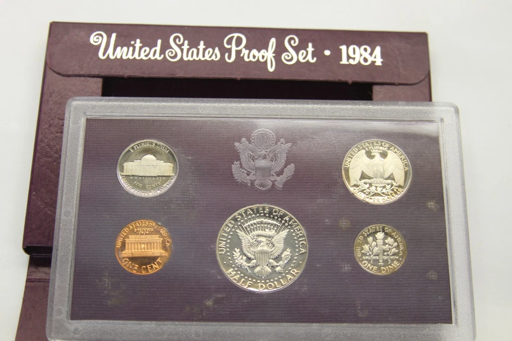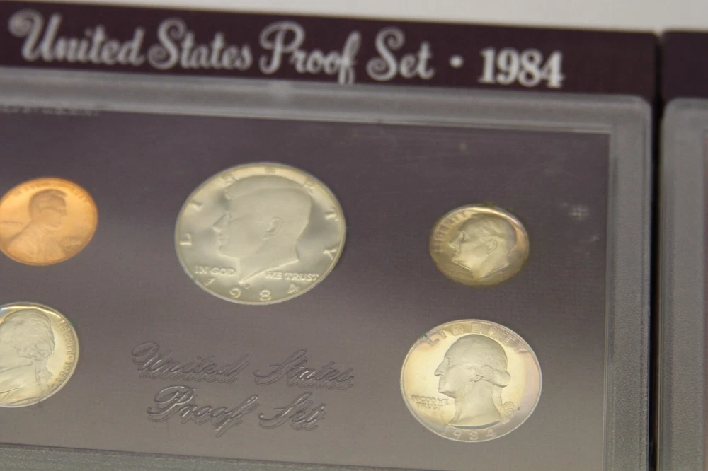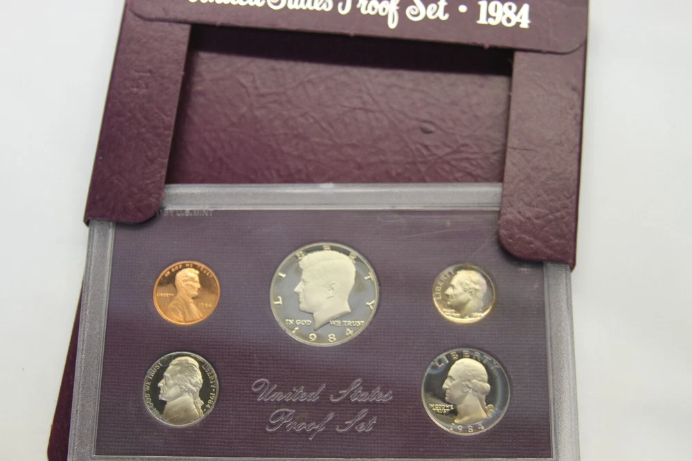 United States Mint Proof Set - ITEM #32 Includes: Lot of 10 Sets - 1984-1993 Very Good for ages. Some staining on cards and there are some with small tarnishing and clouding inside and on the coins and a few of the boxes have some damage. See all pictures for details. CONDITION: AS-SEEN IN PICTURES We are not coin dealers. We have inherited a very large coin collection (1,000+) of various Amercian coins. We have no need for any of them and will be listing them on ebay as time permits. If you have questions, I can try my best to answer but I have no real knowedge of coins, the condition or value other than what's on the coin's packaging and a little research to find a resonable price for each one. Please understand, we are trying to move these and do not want them back. So, if you are interested in purchasing one or more be sure to look at all the photos, read the description and ask questions when in doubt. These are as-seen sales with a NO RETURN - NO EXCHANGE POLICY. Thank you.
