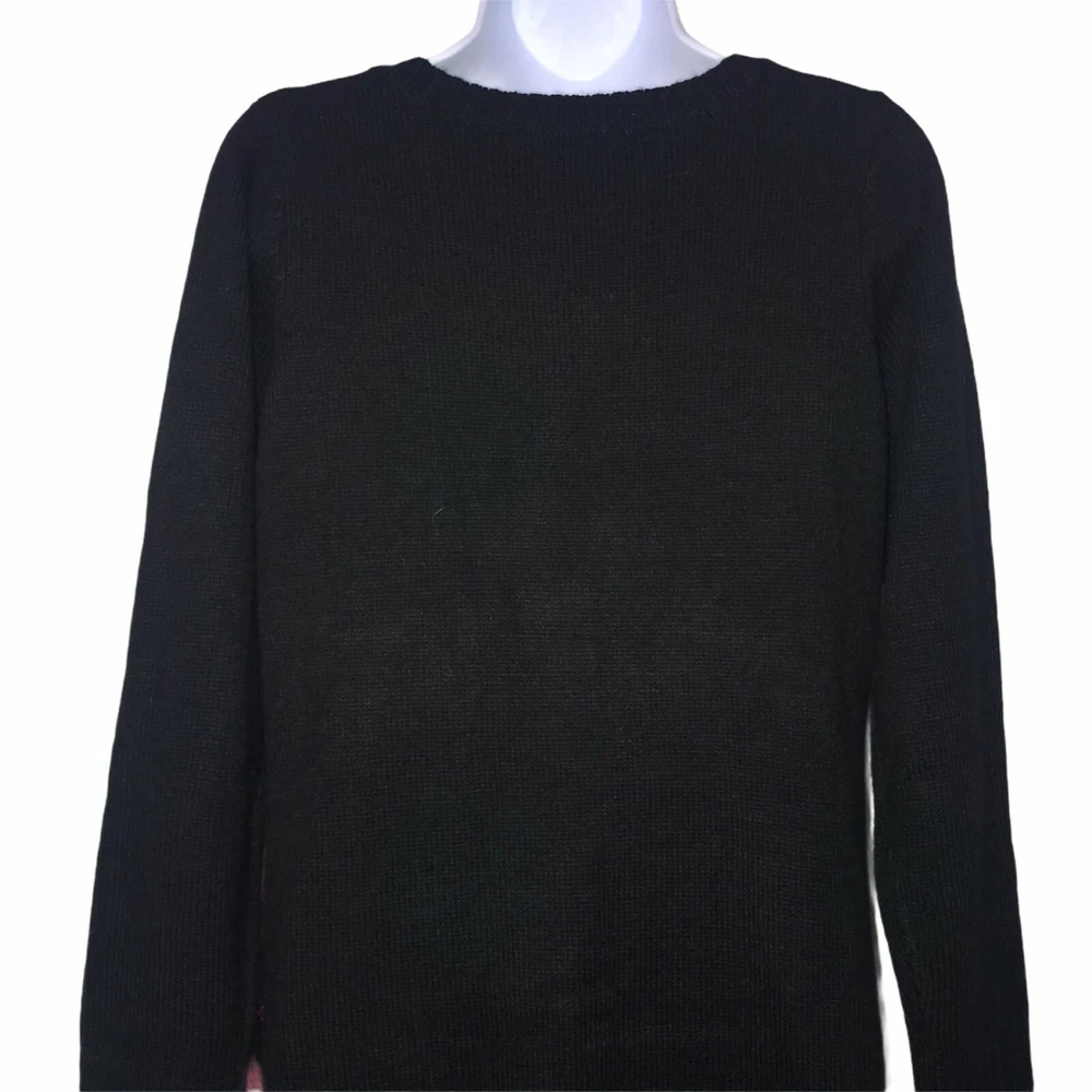 Garment Care: Hand Wash Only Hem Style: Straight Hem Season: Fall, Winter Material: Acrylic Country/Region of Manufacture: China Graphic Print: No Type: Sweater Knit Style: Tight-Knit Sleeve Length: Long Sleeve Size: S Brand: United States Sweaters Character Family: None Accents: Embroidered, Sequin, Metallic, Embellished Vintage: No Character: None Features: Collarless, Lightweight Style: Pullover Occasion: Party/Cocktail Color: Black Personalize: No Size Type: Regular Theme: Animals, Christmas, Ugly Sweater, Holiday Pattern: Check Department: Women Neckline: Crew Neck