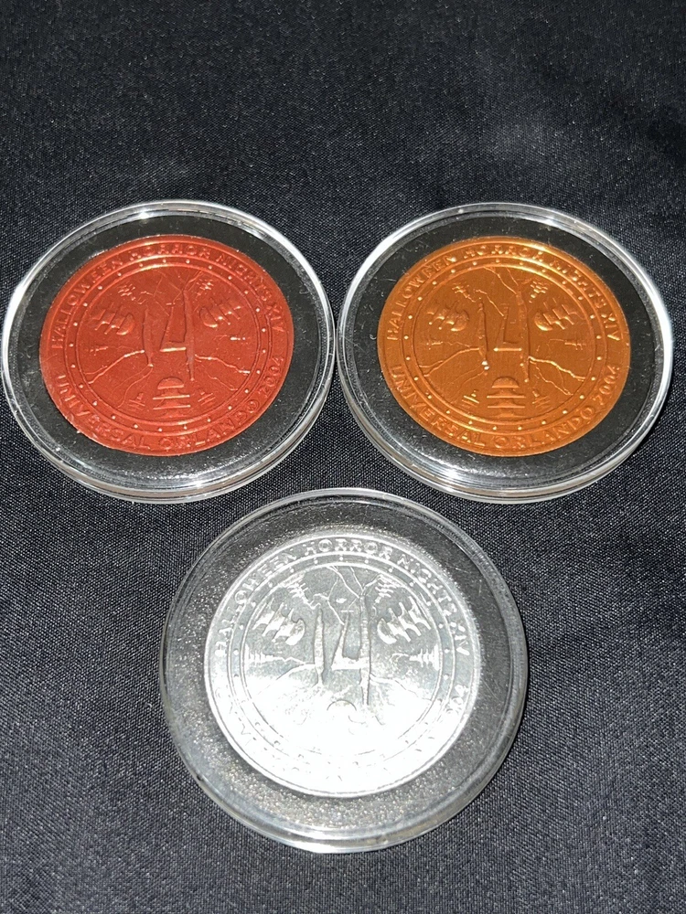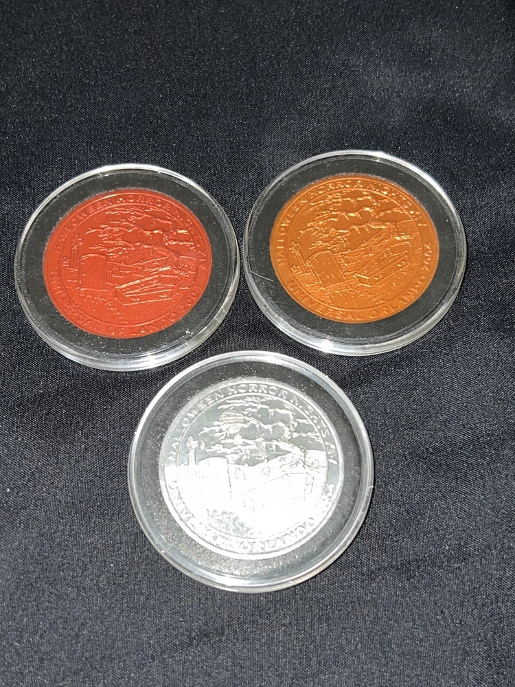 This is a complete set of the parade coins from 2014 these are tossed from parade floats during the event and you are getting a complete set of all 3 color versions. Please ask any questions prior to purchase as all sales are final. There is no returns accepted. They will come in there display cases as shown.