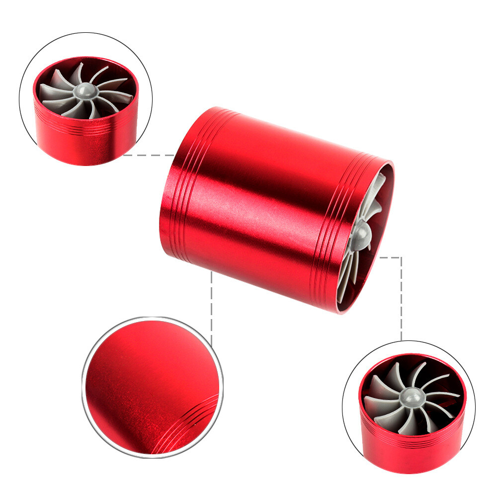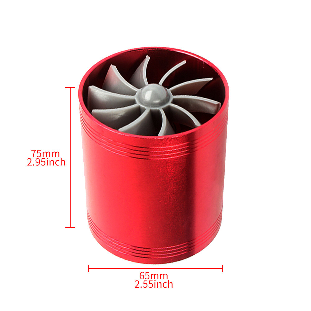 Car Air Intake Turbonator , Dual Fan Turbine Super Gas Fuel Saver Turbo for RV, camperr, Truck, Convertible, SUV Feature 【Product Name】Car Air Intake Turbonator Dual Fan 【Size】As the pictures show 【Color】Red (We also have black/red/blue/silver, if you like other colors, you can email us to send you a link or directly into the store to find) 【Material】Aluminum alloy + Plastic 【Quantity】1 Set Specification 【Features】 Increase the intake air volume of the combustion chamber by the turbofan, improve the combustion efficiency of the combustion chamber gas and thus enhance the horsepower. 【Working Principle】 ABS new material fan blade draws air into the combustion chamber at a higher rate, Improve the atomization degree of the combustion chamber, increased horsepower and gasoline savings. 【Material】 ABS new material fan blade+Aluminum alloy pipe. ABS material is corrosion resistant, heat resistant, high hardness and does not produce metal debris entering the combustion chamber. Aluminum alloy pipes are corrosion resistant, durable and lighter in weight. 【Installation Position】 The turbine is installed in the intake hose of the engine, and the best position is 10cm-30cm / 3.94 "- 11.8" before the throttle valve. 【Note】Suitable for car models with inlet pipe diameter greater than 2.5 inches. 【Note】Installation instructions are not included with the product. If you have any installation problems, please contact us by e-mail, we will provide you with electronic installation instructions or installation video. Fitment: Universal Fitment If there is any fitment uncertainty as to whether or not your car will be able to use this product, you can contact us by email! Package included: 1* Car Air Intake Turbonator Dual Fan Note Manual measurement may exist 1-2cm error, please understand Please be reminded that due lighting effects, monitor's brightness/contrast settings etc, there could be some slight differences in the colour tone of the website's photo and the actual item. If there is an unexpected delay in transit of your goods, or if you find there are some unexpected problems with the product after you receive it, we sincerely hope you will email us first instead of opening a case or give bad reviews, it is very important to us and I appreciate your understanding. We guarantee that you can get a satisfactory solution.