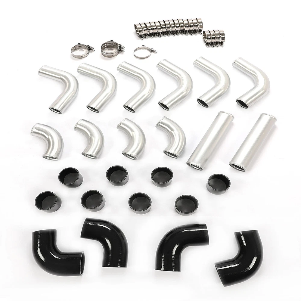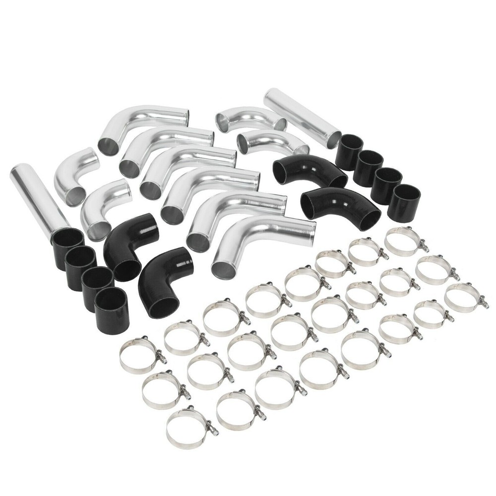 Universal 3" Aluminum Turbo Intercooler Pipe Tube Kit w/ Silicone Hose + Clamps Item Description Multiple compatibility: Universal DIY Kit for Turbo / Supercharger / etc.... This kit is mainly used for automobile refitting the turbocharger cooling inter-cooled device pipe of the suite and admission line. Note: This is Not Bolt-On or Plug & Play! modify, cutting or bending may required depending on your application Feature: This tube set is made of Aluminium, which has excellent durability and reliability. The surface of the kit is Polishing, ensuring long-term stability Function: Intercooler Pipe and Boot Kit play an important role in forced air induction system, helping to improve engine performance and fuel economy while ensuring system reliability and safety. Through effective air cooling and solid connections, they can ensure that the engine runs in the well condition Easy installation: Clamp installation design makes the installation process simple and fast. The Boot Kit mainly consists of hoses and clamps, which are used to connect the intercooler pipes and other intake system components, ensuring a solid connection between the various parts Specifications Condition:100% Brand New Warranty: 90 Day Free Return:30 Day Color: Chrome / Black as pics shown Surface finish: Oxidation Material: High quality T-6061 Lightweight Aluminum Piping 3" inch Piping Diameter Increase 65% Air Flow Comparing with other Standard Piping Triple reinforced silicone able to withstand high heat and pressure Will reduce vibration transfer due to hard impact shifting or engine movement Fitment Universal Fitment,Upgrades for turbo car (modification require) Package Included 2x Straight Aluminum Pipe 6x 90 Degree Mandrel Bent Long Aluminum Pipe 4x 90 Degree Mandrel Bent Short Aluminum Pipe 8x Straight Silicone Couplers 4x Elbow Silicone Couplers Stainless Steel T Bolt Clamps Kit As pictures show FAQ: I purchased by mistake, how do I cancel the order? Please contact us ASAP. If the item has not been shipped out we can cancel the order for you. If the item was shipped out you can refuse the package and wait for the item to return to us. I received your item but it does not fit or is defective Please contact us so we can assist you on the matter. Buy with confidence Our quality is based on meeting the requirements of the manufacturer and improvement them in design problems manufacture. NOTE: (1)It would be highly appreciated if you might contact us first once you have any problems concerning the items. And you can expect all the issues would be resolved ASAP! (2)Please let us know before you send us the neutral/negative feedback that wont help to finish the issues. And I will definitely try my best to provide the best solutions which would meet our satisfactory! (3)According to the distance of the receipt address items would be sent from CA or NJ