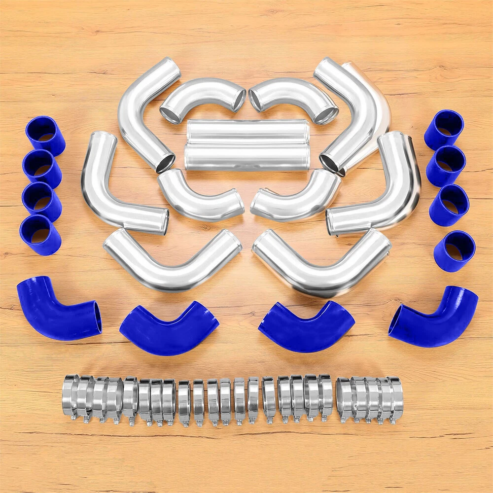 This intercooler piping kit is a fantastic upgrade! The high-quality aluminum construction with corrosion-resistant chrome plating ensures long-lasting performance, even in tough conditions. The couplers and T-clamps fit snugly, making installation a breeze. Plus, the vibrant blue finish adds a sleek, eye-catching look under the hood. The improved durability and wear resistance make it worth every penny—perfect for boosting both performance and style. Highly recommended!