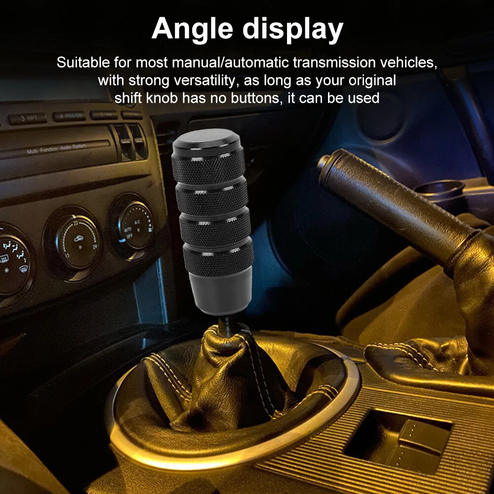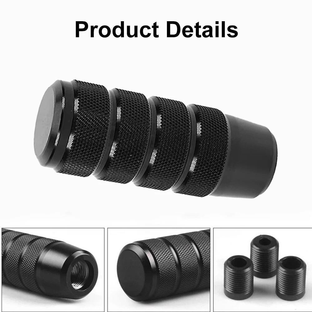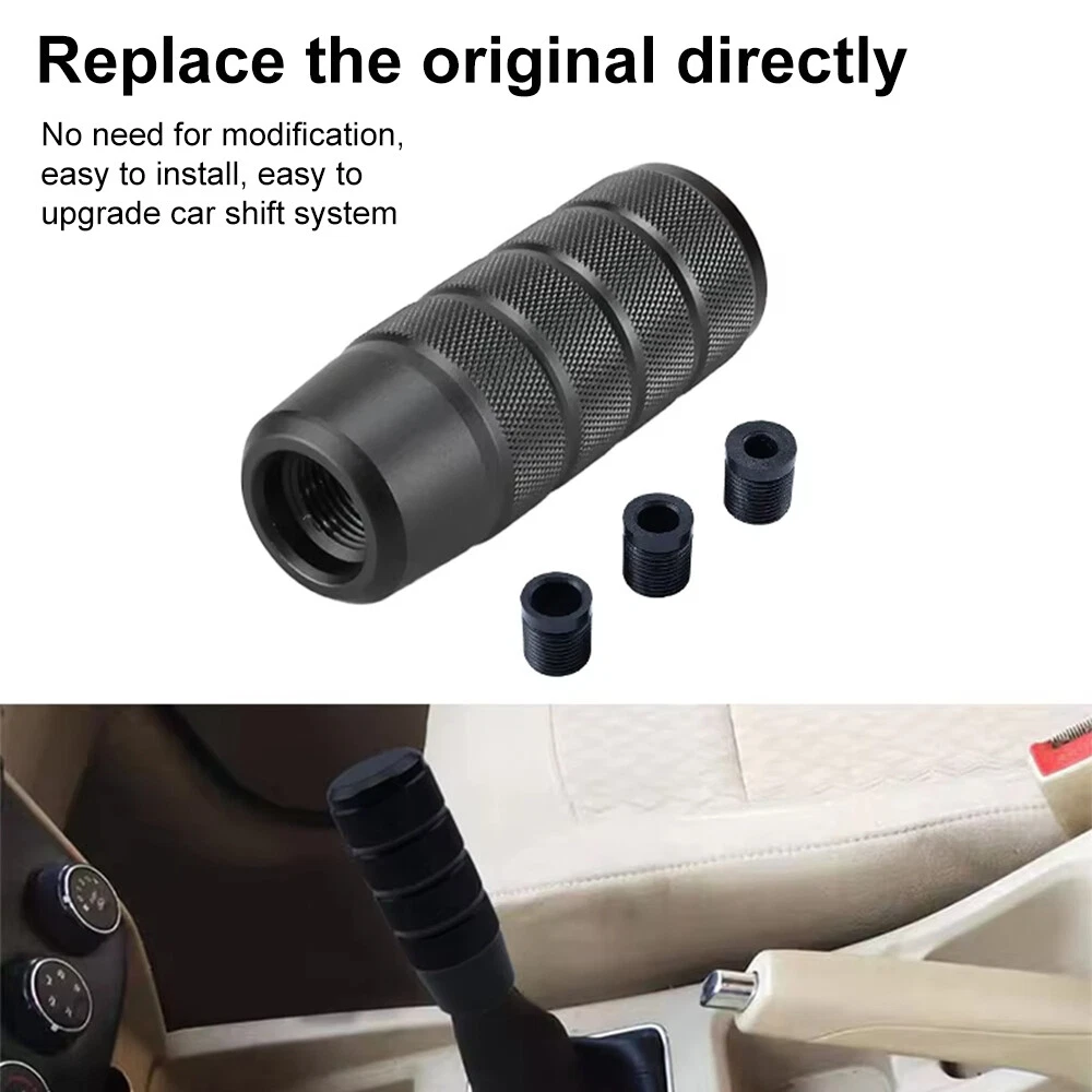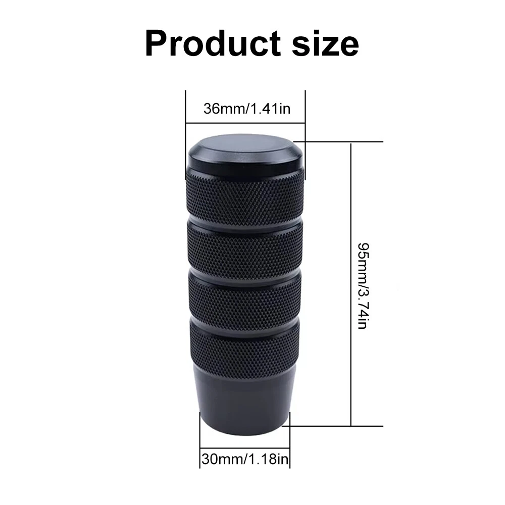 Features: 1. Brand new and high quality, guaranteed. Bring your car a top accessory experience and worry-free use. 2. Directly replace the original knob, no modification required, easy to install, easy to upgrade your car shift system. 3. Made of aluminum alloy, sturdy and durable, giving long life to the car shift knob. 4. Suitable for most manual/automatic cars, universal, as long as your original shift knob has no buttons, you can use it. 5. 95mm length, well-designed dimensions, perfect fit, make the gearshift operation more comfortable and natural. Specification: Material: aluminum alloy Color: black Size: 36mm diameter, 95mm length Thread adapter specification: 8mm (M8) / 10mm (M10) / 12mm (M12) Installation method: 1. Remove the original gear head 2. Remove the aluminum sleeve at the bottom of the fixed head. 3. Fit the rubber sleeve to the size of the gear lever. 4. Screw the rubber sleeve onto the gear rod. 5. Insert the gear head directly into the gear rod. Package List: 1 x Shift Knob 3 x Threaded adapter On Nov 26, 2024 at 23:04:13 PST, seller added the following information: