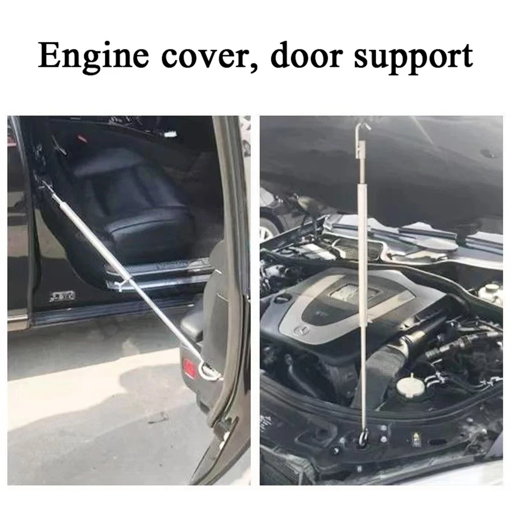 Enhanced Efficiency: With this hood prop rod, you can help you stabilize your engine cover and make your repair or maintenance safer and more convenient. No more worrying about the hood falling down or getting in your way. This hood prop rod is easy to use and store, and can fit most vehicles. Convenient Solution: No need for extra support or fixation: this hood prop rod saves time when performing hammering, pulling, sanding, or painting tasks while keeping doors open. Versatile and Flexible: This hood prop rod can accommodate different sizes and shapes of doors and hoods, as it can be adjusted from 45cm to 75cm. It is also telescopic and adjustable, so you can easily find the optimal position for your work. Durable Material: Crafted from heavy-duty metal materials, this hood prop rod is exceptionally durable and can withstand rigorous use and extreme conditions. You can rely on it to hold up under heavy loads without bending or breaking, ensuring reliable and long-lasting performance. Hassle-Free Assembly: Say goodbye to the hassle of using tools or screws. Clamp the ends securely between your car hood or door for effortless setup of this hood prop rod. Install or remove it easily, in seconds and without any fuss. Ensure your safety during repairs with our Telescopic and adjustable car hood prop rod. Keep doors open conveniently! Its durable design resists deformation and damages and is easy to install. Specification: Material: Stainless steel Adjustable length: Minimum(approx.)45cm/17.72 inches Maximum(approx.)75cm/29.53 inches Applicable: All makes of cars and trucks. Weight: 710g Pack list: Hood Prop Rod*1